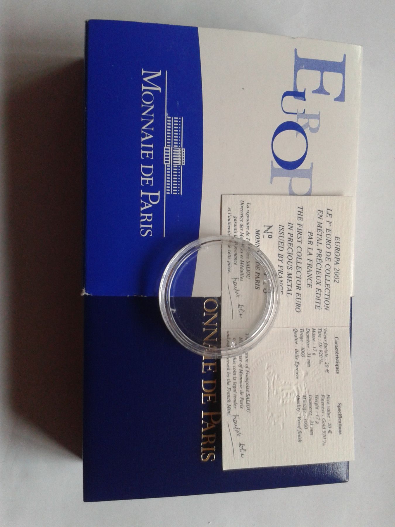20 euro 2002 PP Frankreich Europa: Münzdose, Etui, Zertifikat und Umverpackung