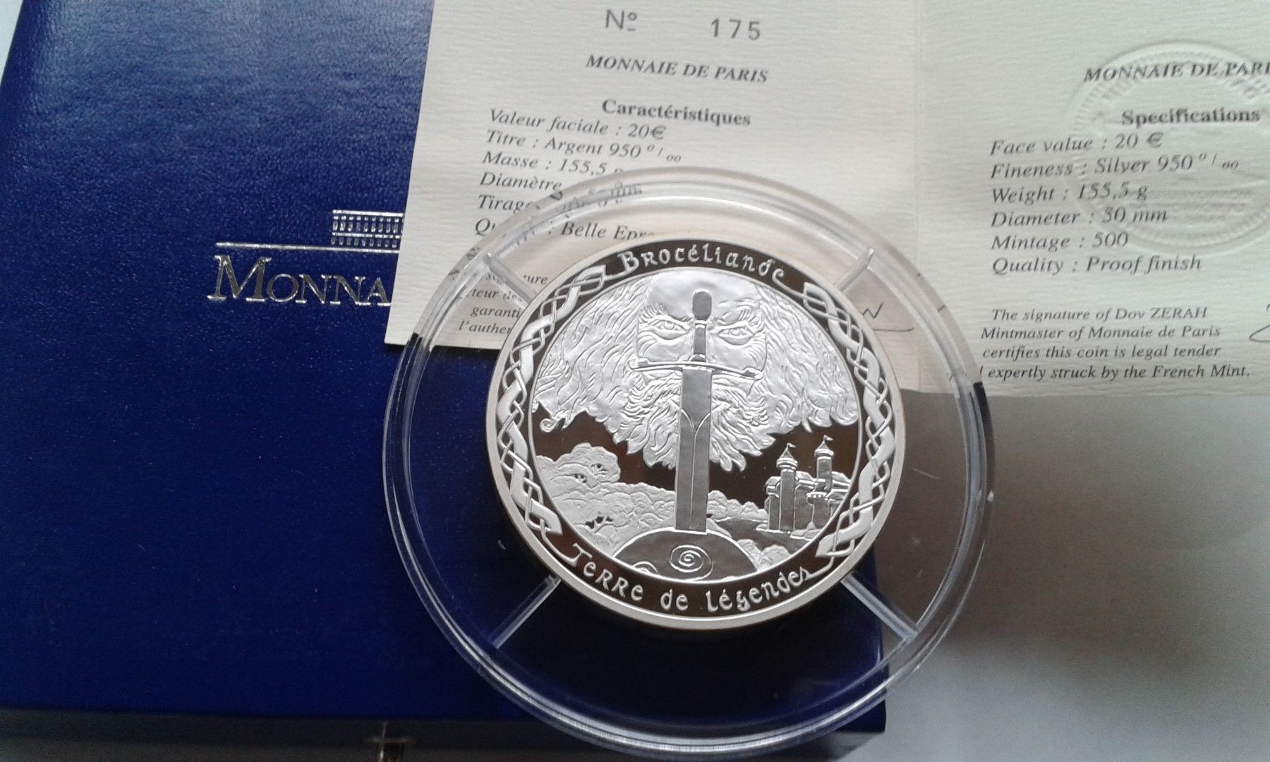 20 euro 2007 Frankreich Broceliande Zauberwald Merlin König Artus Sage 5 Unzen Silber