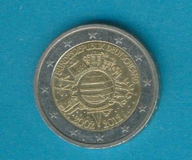 • Deutschland 2 Euro 2012 D 10 Jahre Bargeld