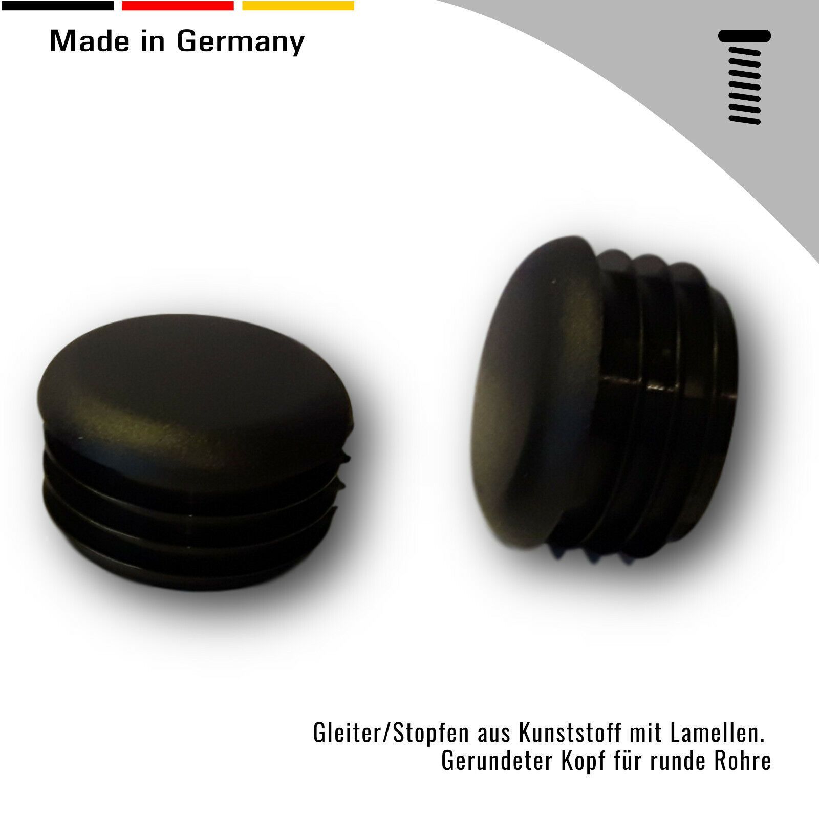 20 Stopfen mit Lamellen für runde Rohre, Kunststoff, Schwarz Leicht gerundeter Kopf Das erste M aß gibt den Rohraußendurchmesser an Das zweite Maß gibt die Rohrwandstärke an Die Varianten, wo kein zweites Maß angegeben ist, sind alle für eine Wandstärke von 1,5-2 mm geeignet Bei größerem Bedarf ist