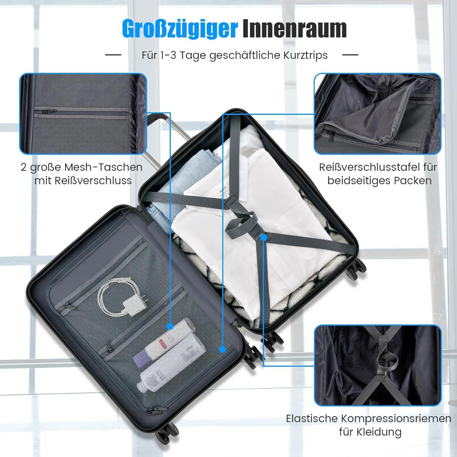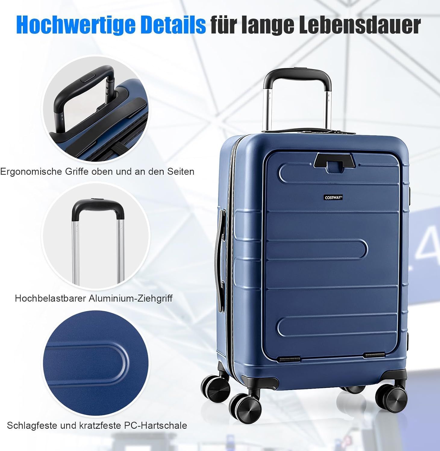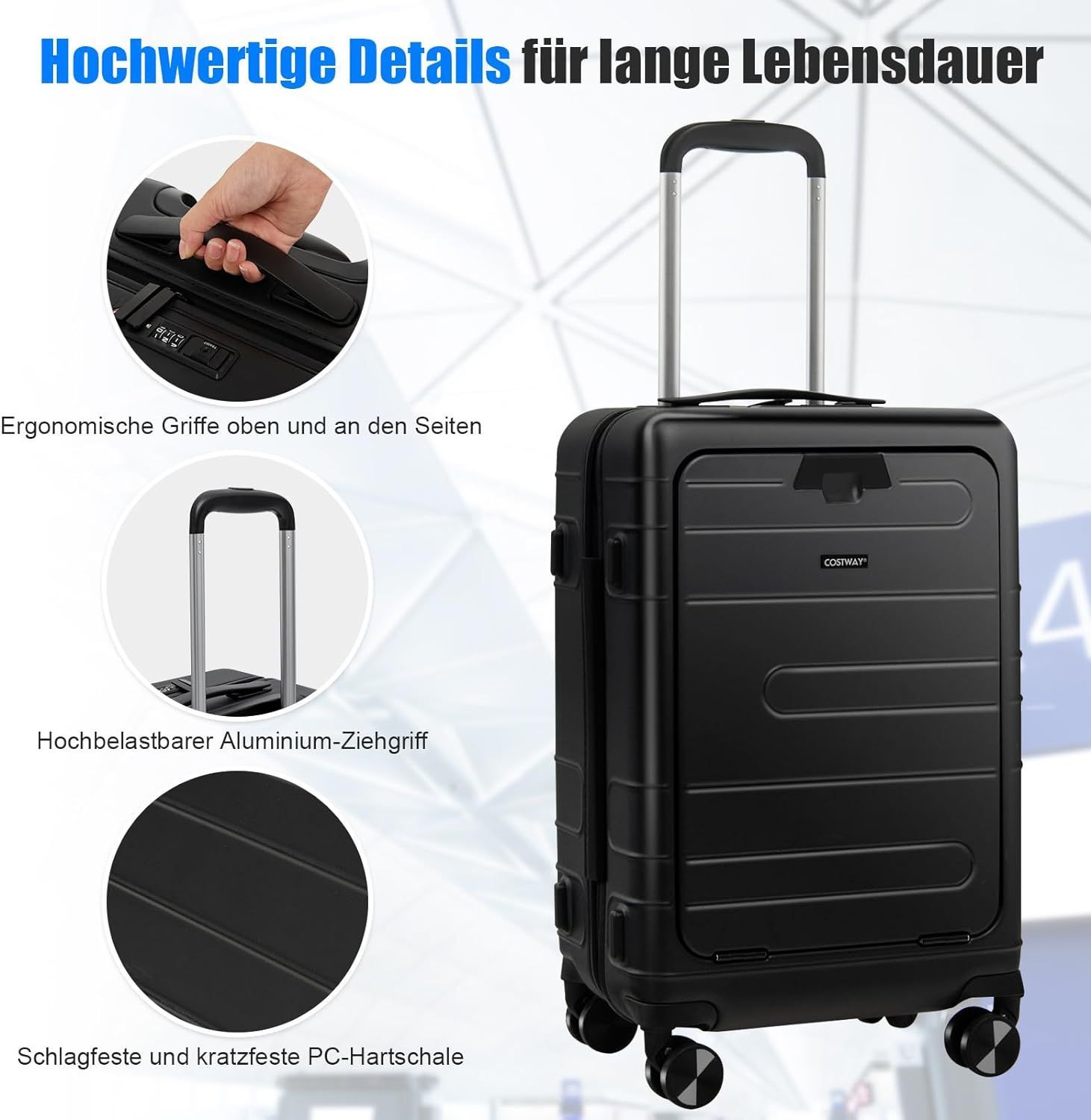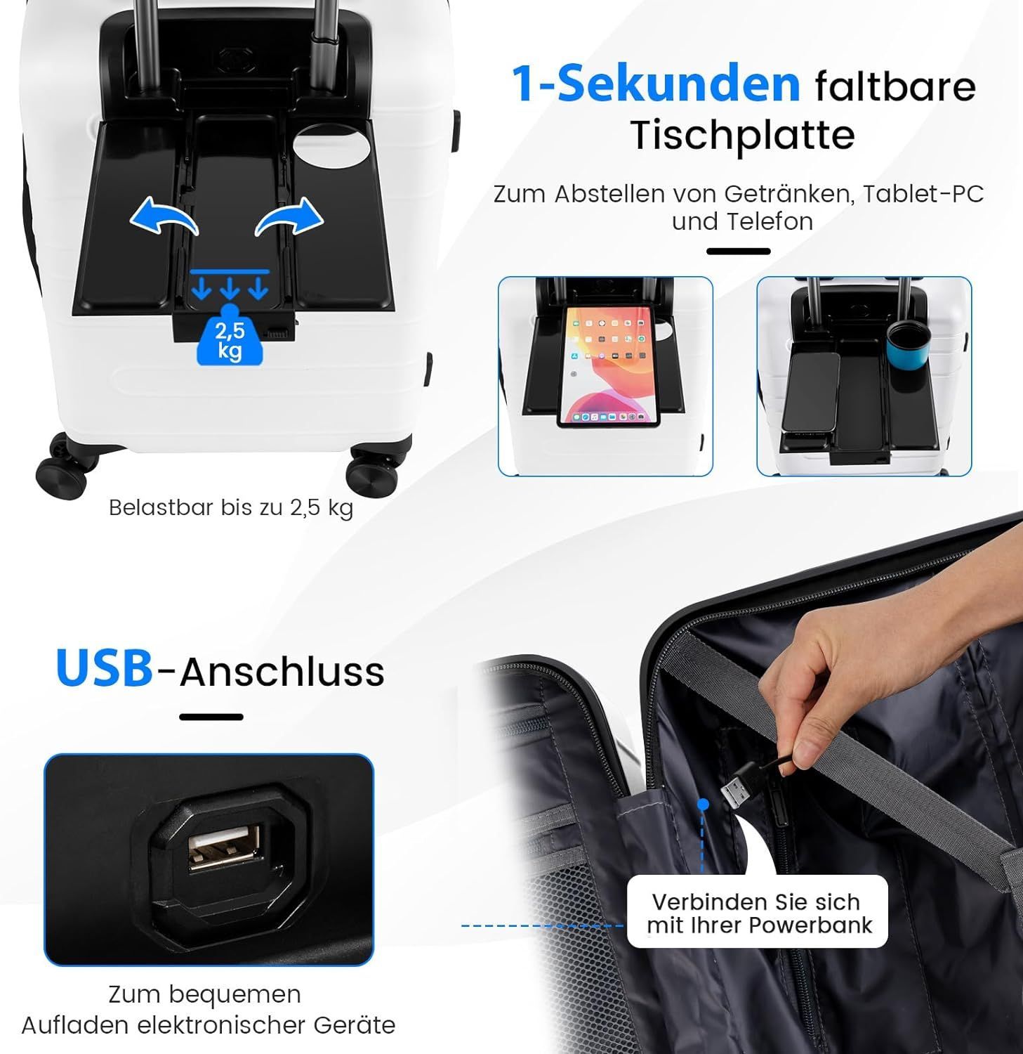 20” Handgepäck mit klappbarer Tischplatte, 38L Reisekoffer mit Vordertasche