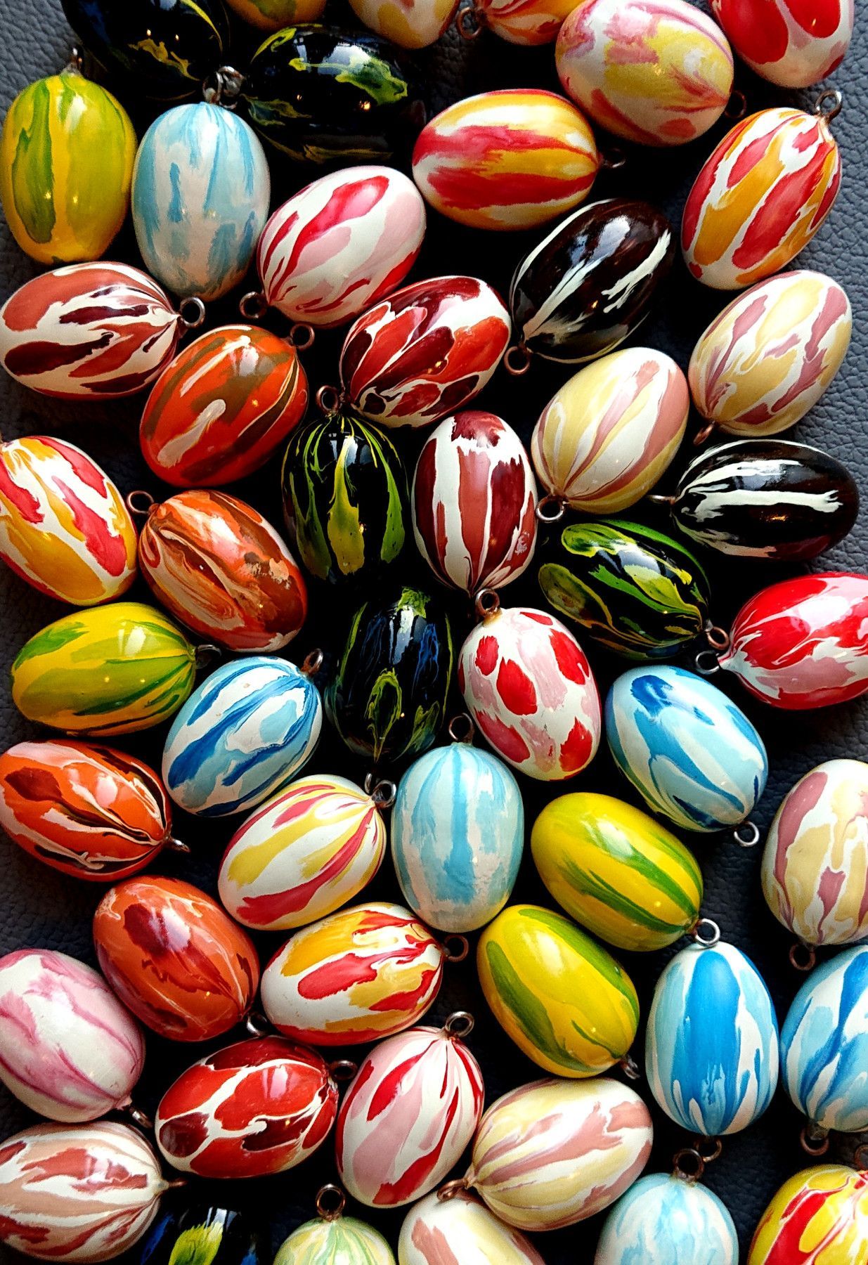20 Holz Eier 2,5cm gedrechselt bemalt zum hängen Osterstrauch Osterei Erzgebirge