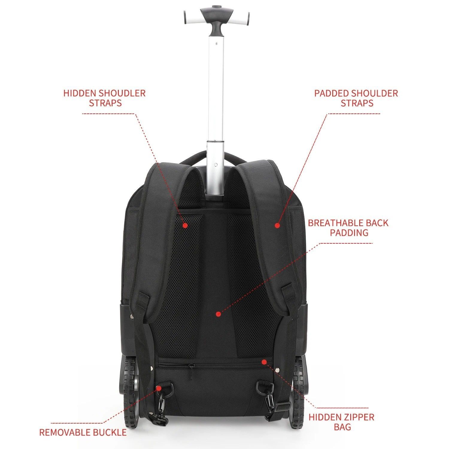 20 Inch Rolling Laptop Backpack - Wheeled Carry-On Trolley Bag