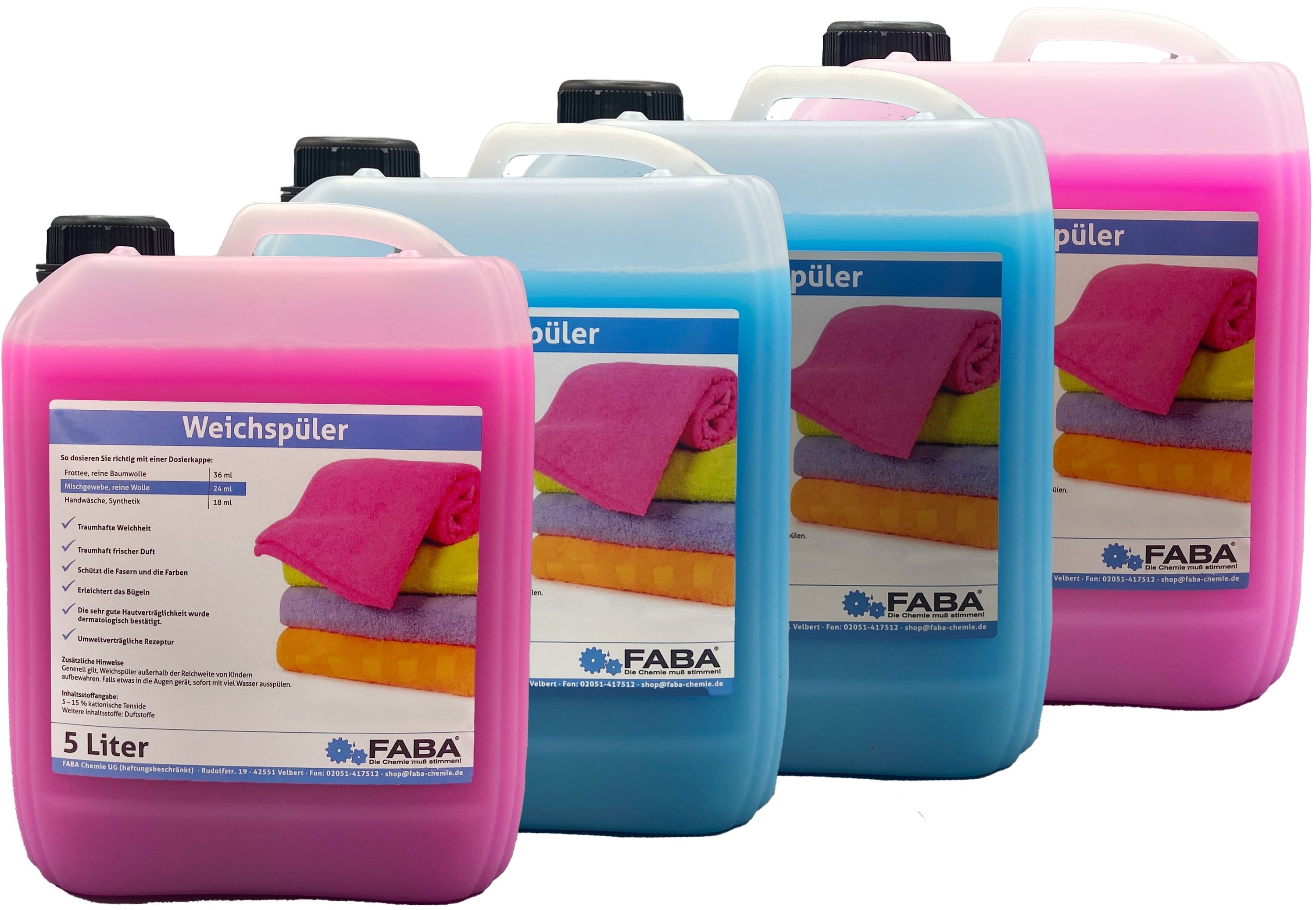 20 L Weichspüler (2xblau, 2xrosa) im Kanister 4 x 5 L