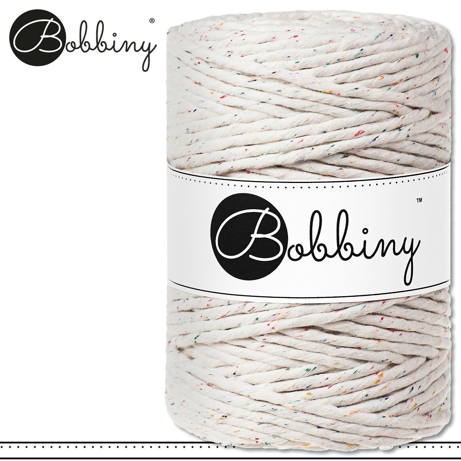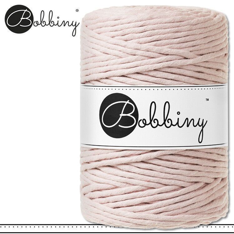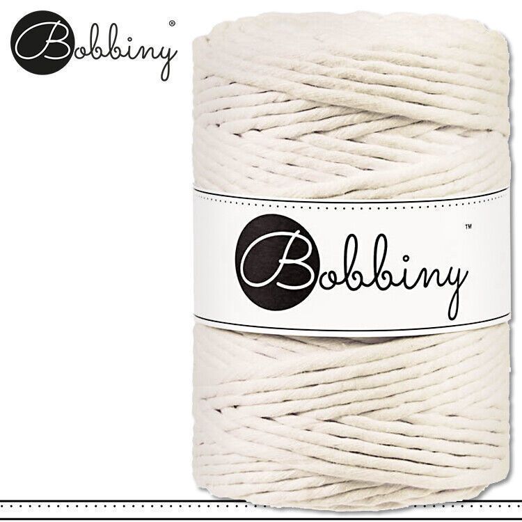 20 Meter Bobbiny 5 mm Makrameeschnur Beschreibung Euro Material : 100% recycelte Baumwolle Besteht aus 112 Garnfäden Euro Öko-Tex-Zulassung Standard 100 Euro Gewicht : circa 690 g Euro Durchmesser : 5 mm Euro Laufmeter : 20 m Euro Nadelstärke : 8 Euro Umweltfreundlich : innere Pappspule aus Recyclin