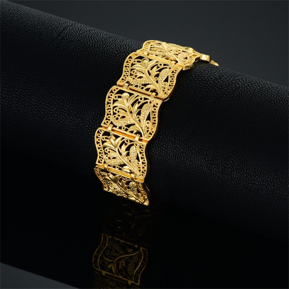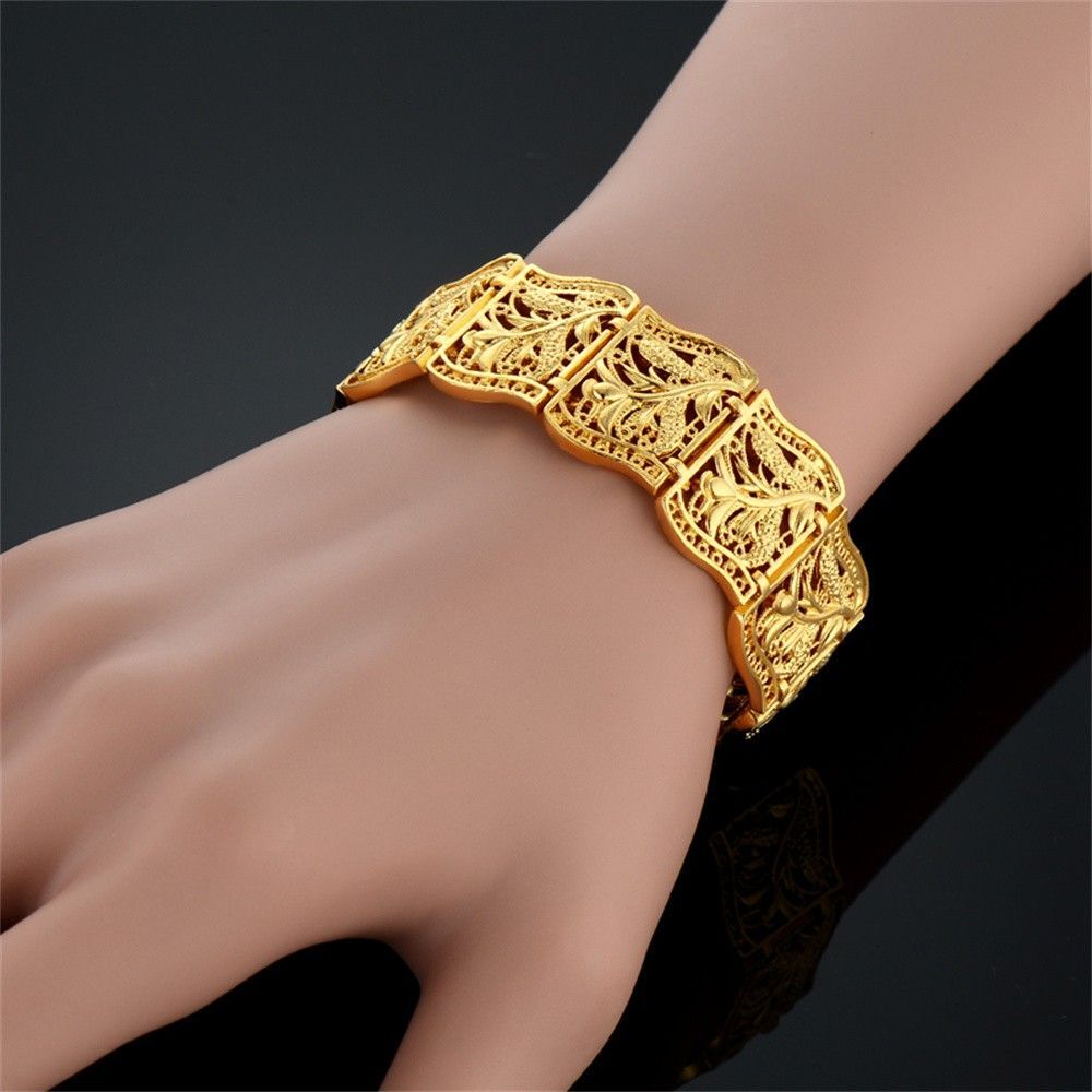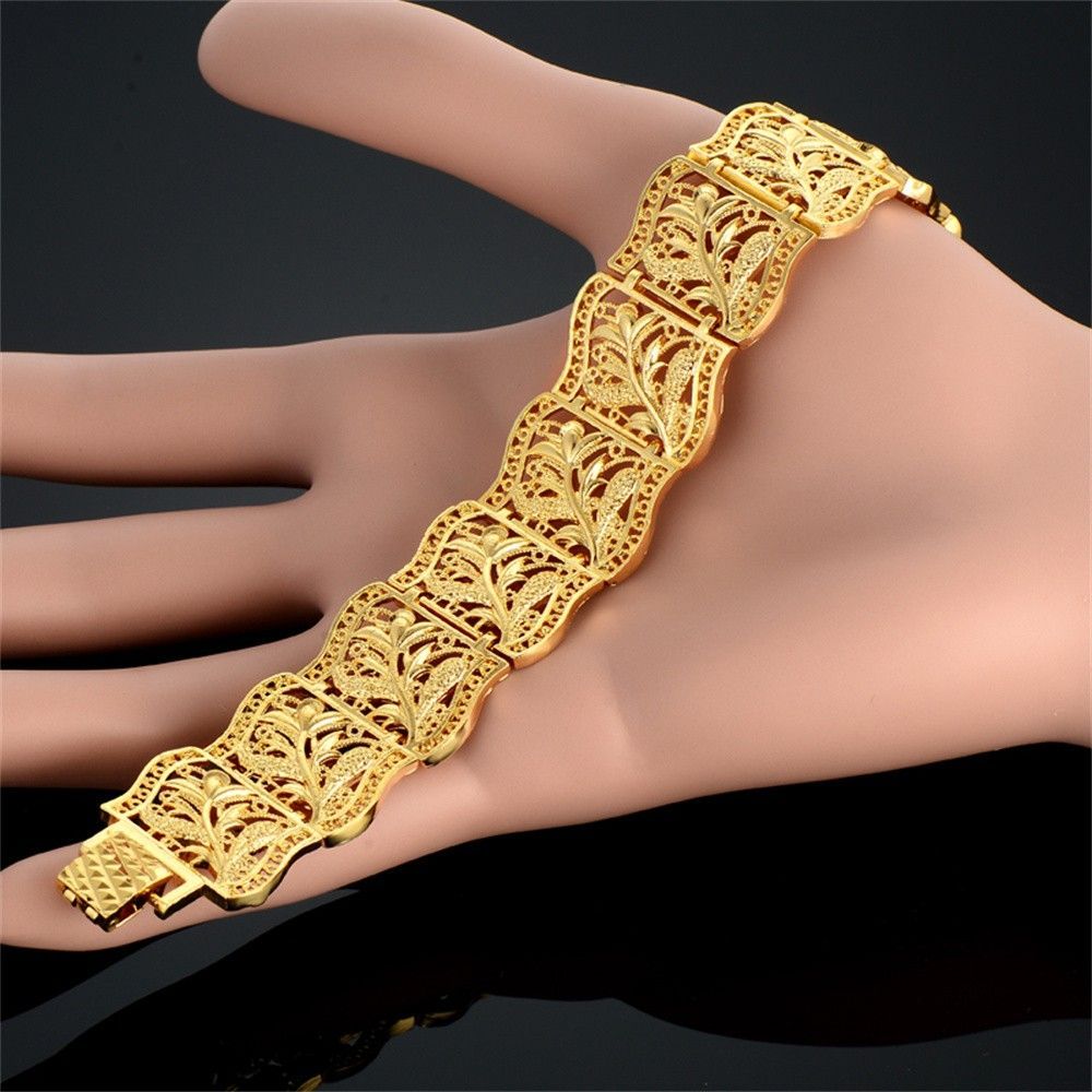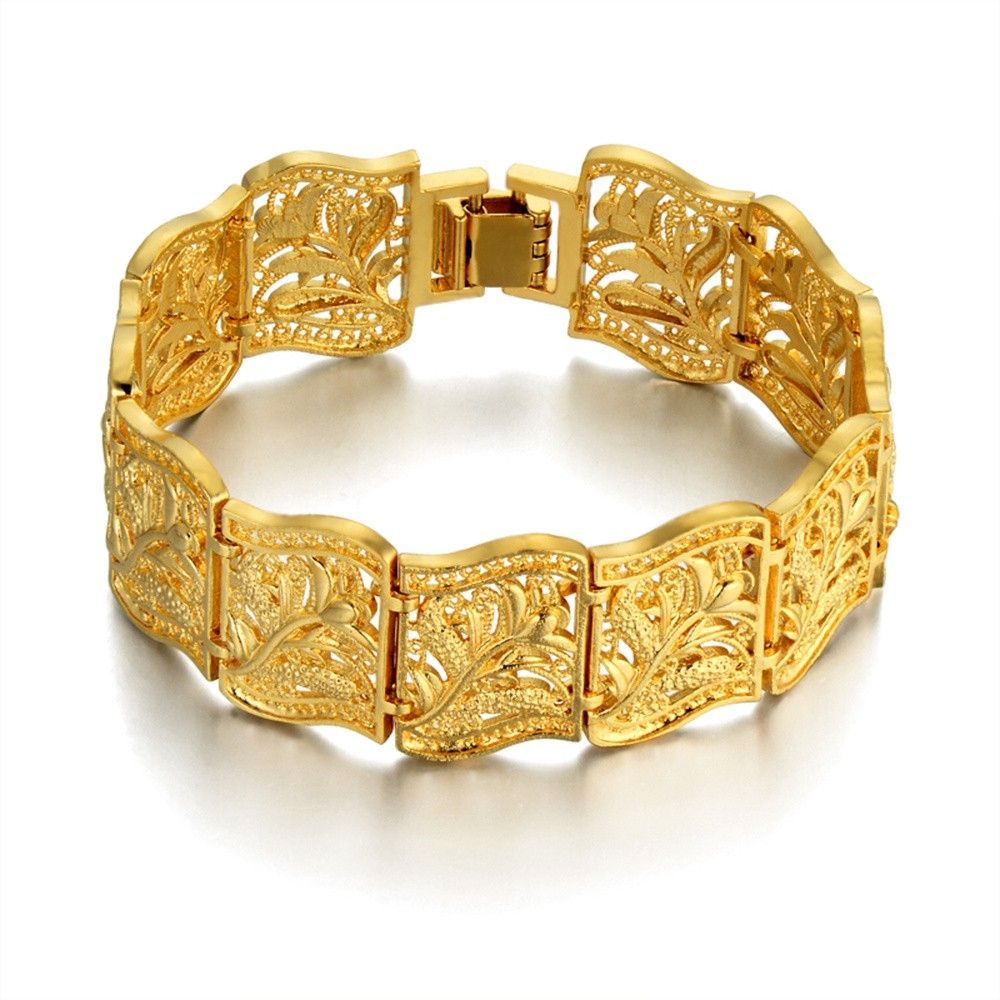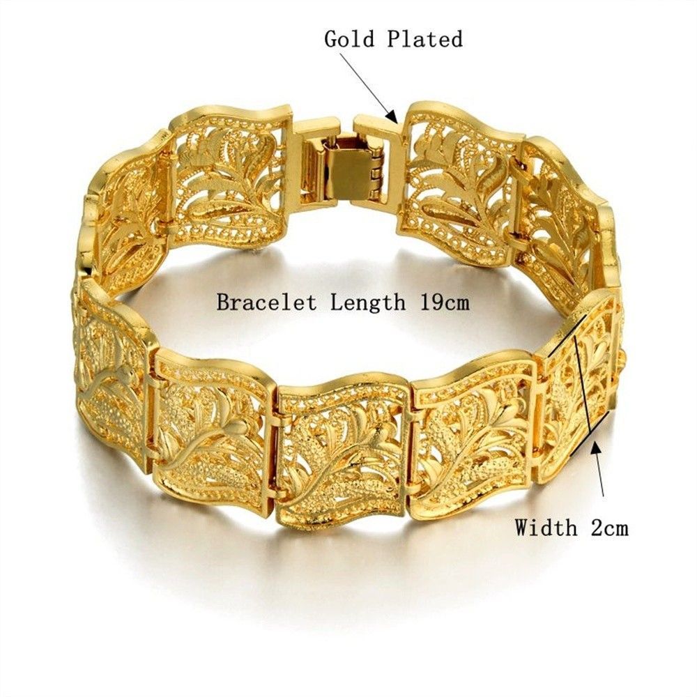 20MM Blattblumenmuster Klobiges großes Armband für Männer Frauen Afrikanisches vergoldetes Kettenarmband Armreifen Armband Trendy Schmuck ♦ Metall: 18 Karat vergoldet ♦ Metall: Kupferlegierung, hochwertig und umweltfreundlich, nickelfrei, bleifrei, hypoallergen, nicht hautreizend. &diams
