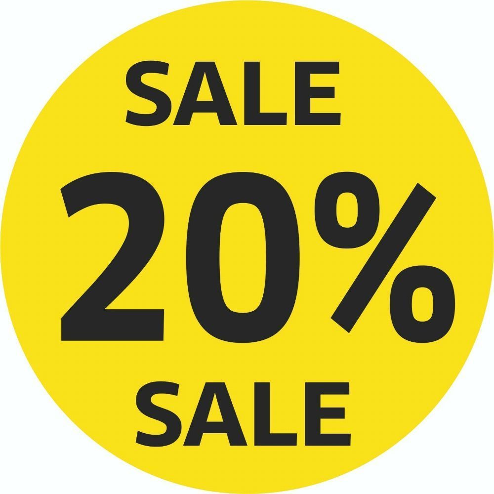 20% SALE Schaufenster Aufkleber Rabatt Ausverkauf Schlussverkauf SSV WSV % gelb