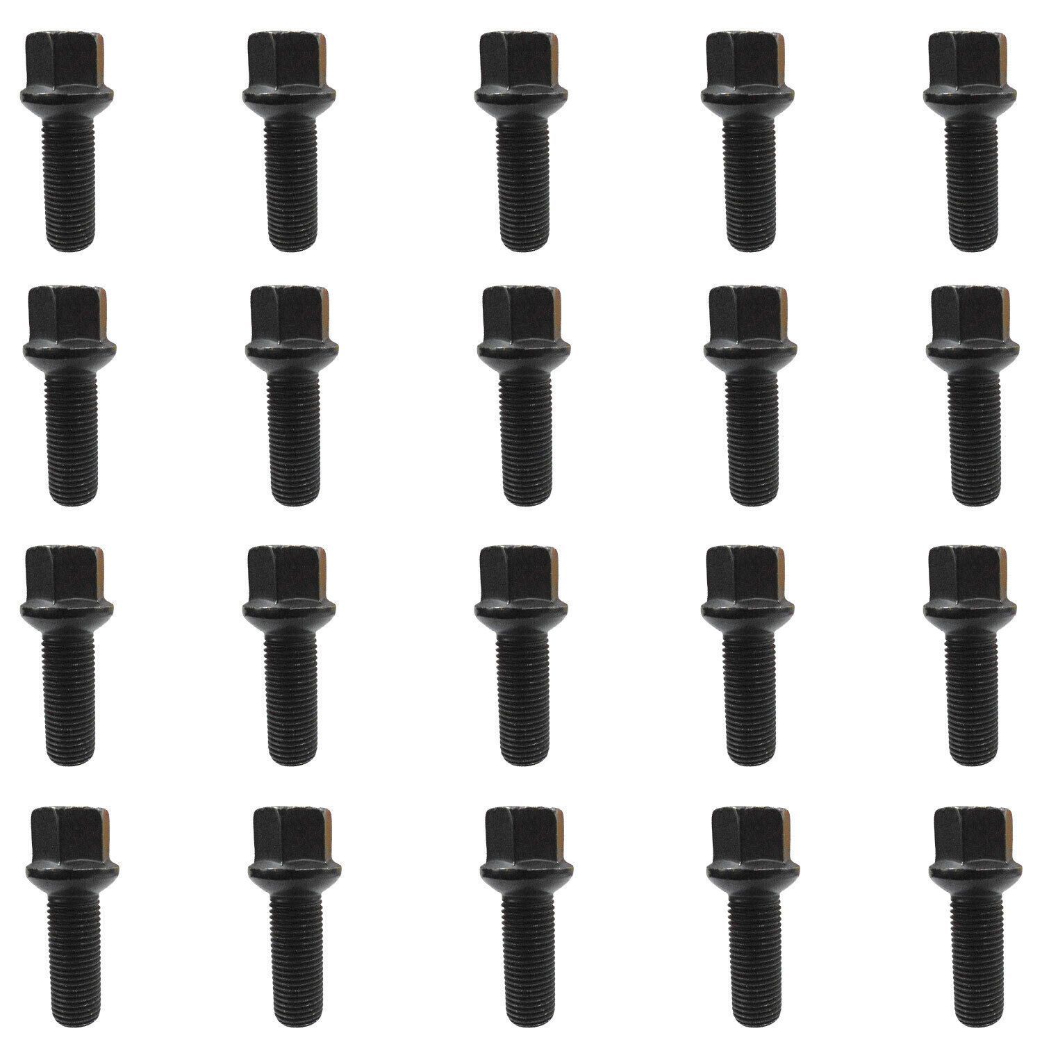20 schwarze Radschrauben Radbolzen Kugelbund M14x1,5 35mm Porsche VW (Gr. M14)