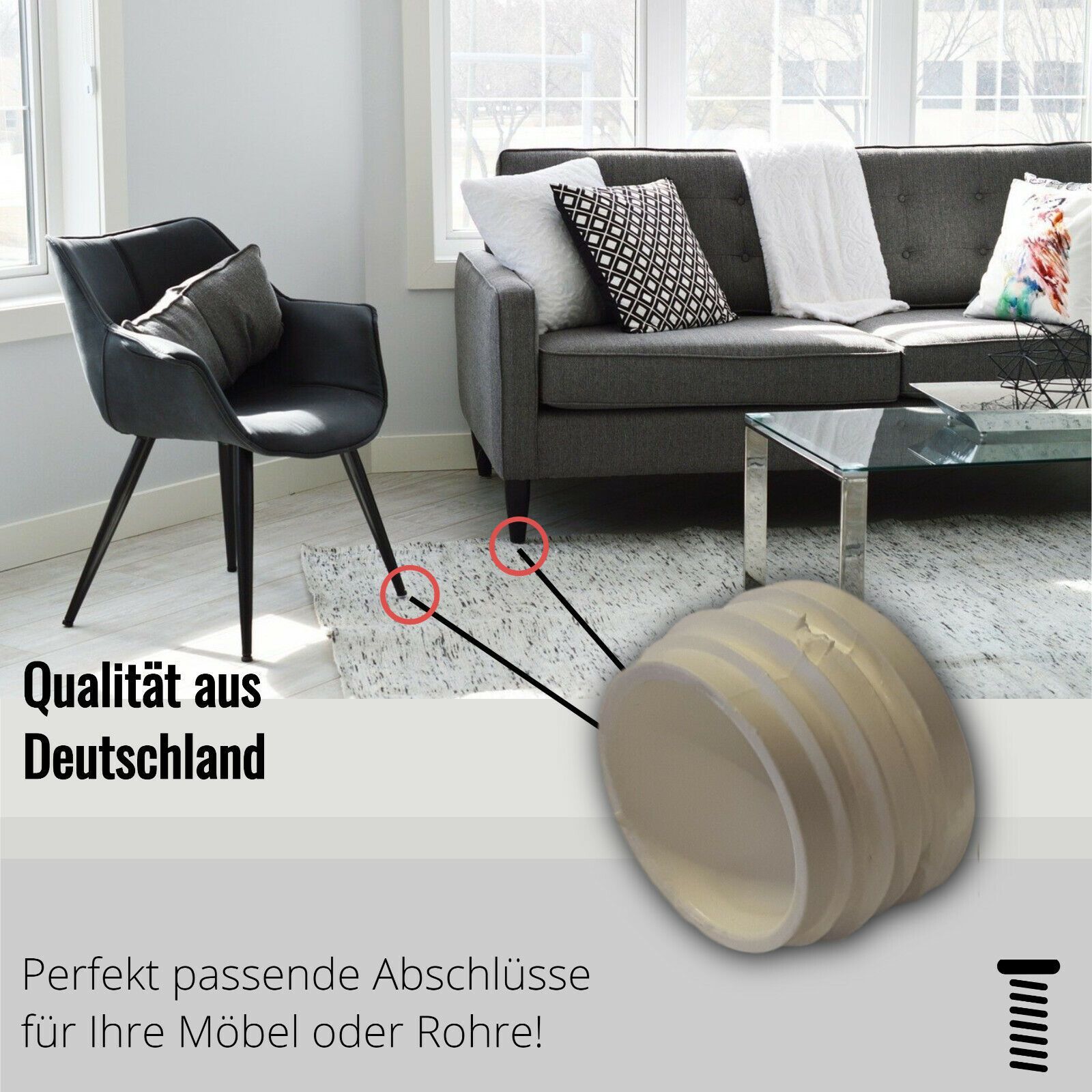 20 Stopfen/ Abdeckkappen/ Gleiter mit Lamellen runde Rohre Kunststoff Weiß Rund