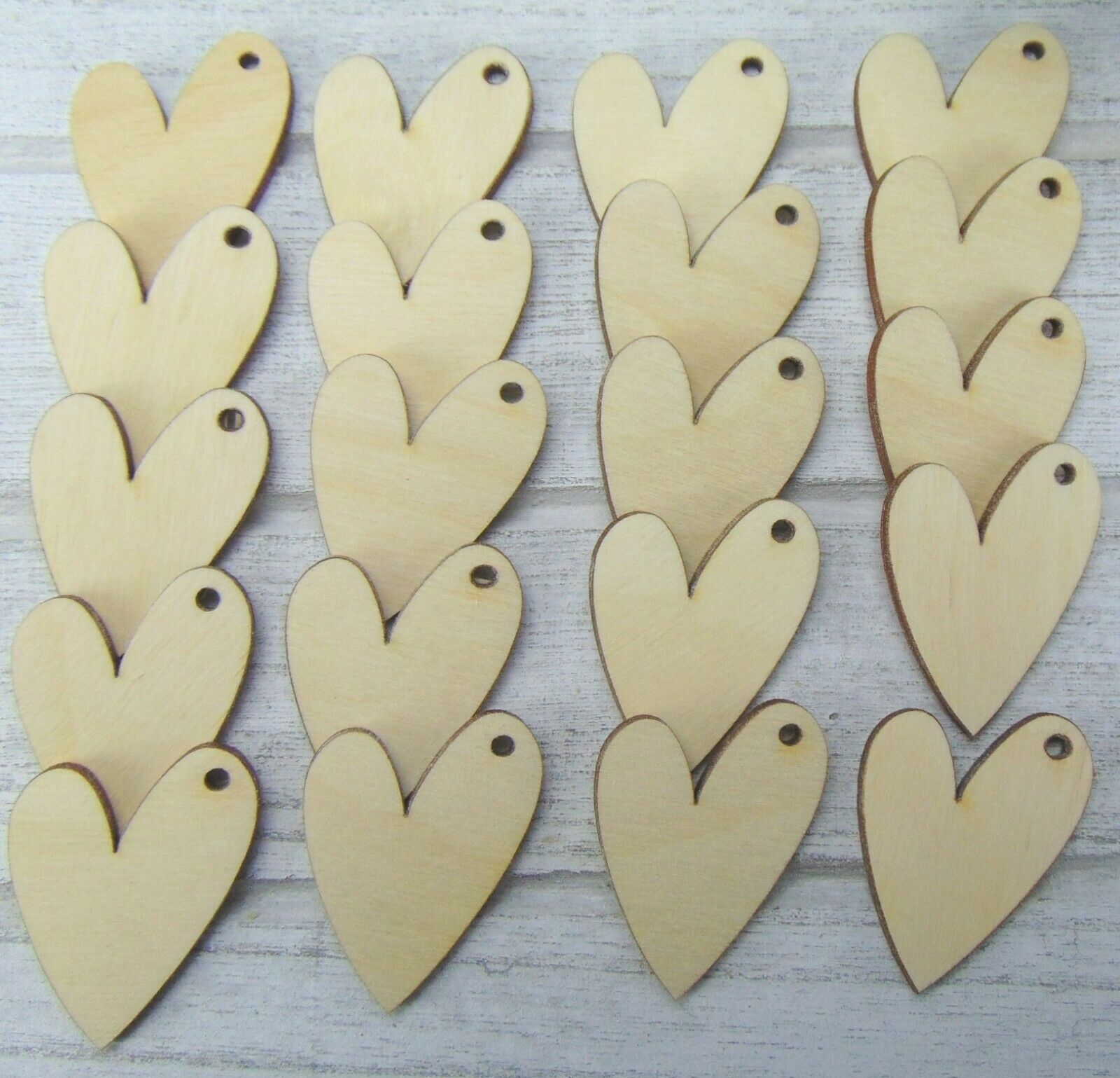 20 Stück moderne Herzen Holz Herz 4 cm für Dekoration mit Loch Hochzeit Geburtstag