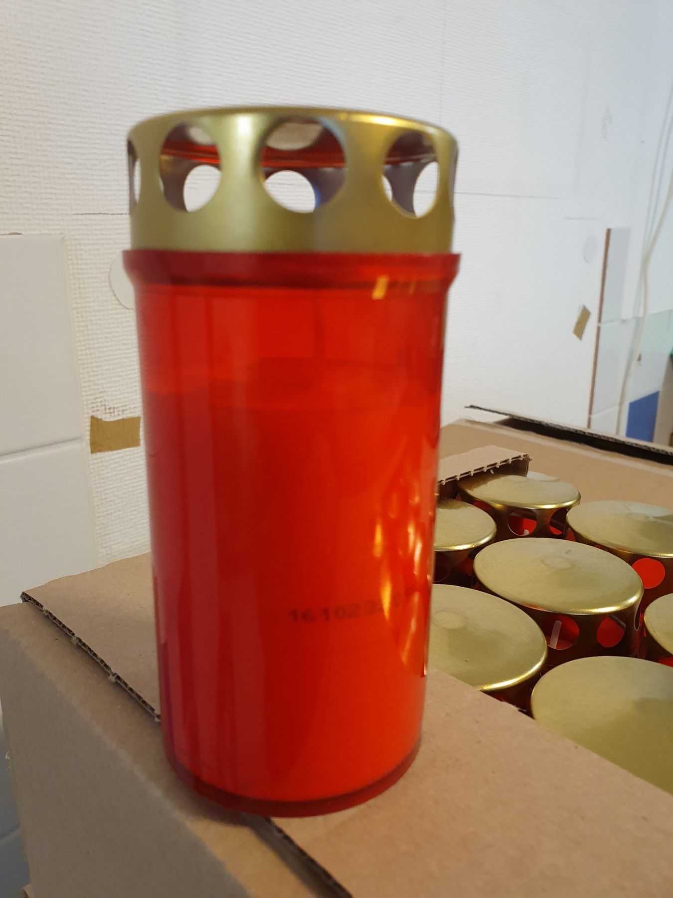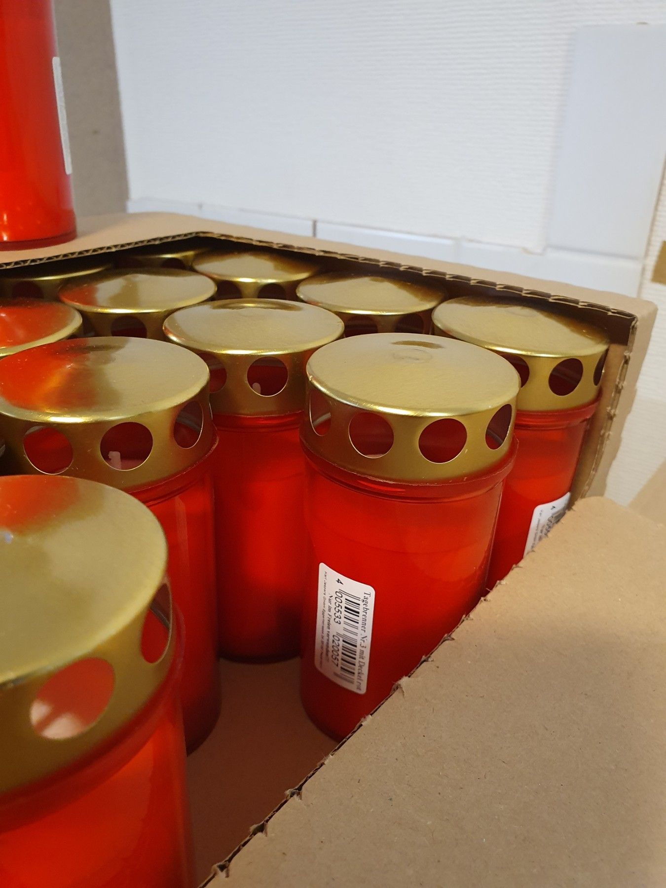20 Stück Tagebrenner Nr. 3 mit Golddeckel, rot -- Grabkerzen Höhe 120mm Durchmesser 60mm Brenndauer ca. 3 Tage Neuware Sie erhalten 20 Stück Grabkerzen