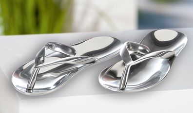 • GILDE Schale, "Sandale", Flip-Flop-Motiv, Aluminium, silberfarben 2 Stück wie