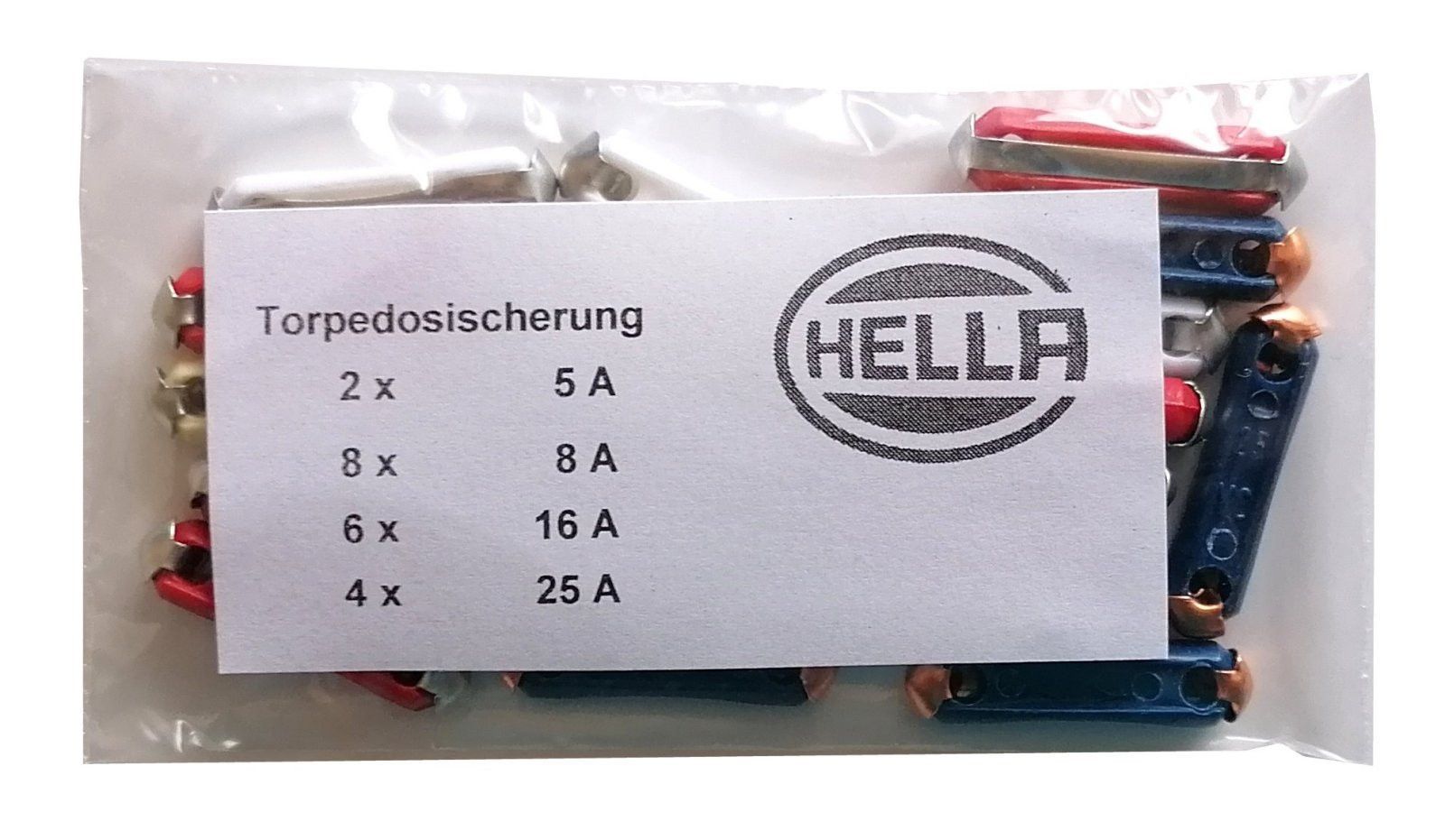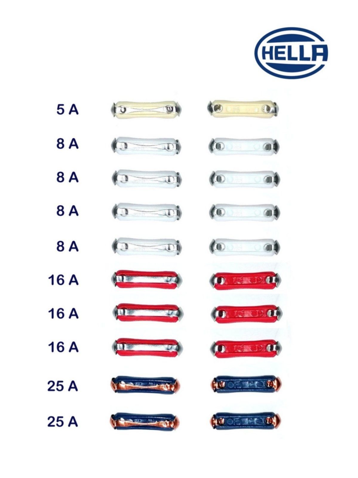 Hella 20-tlg. Hella KFZ Sicherung Set 5-25 A Torpedosicherung Schmelzsicherung DIN 72581/1