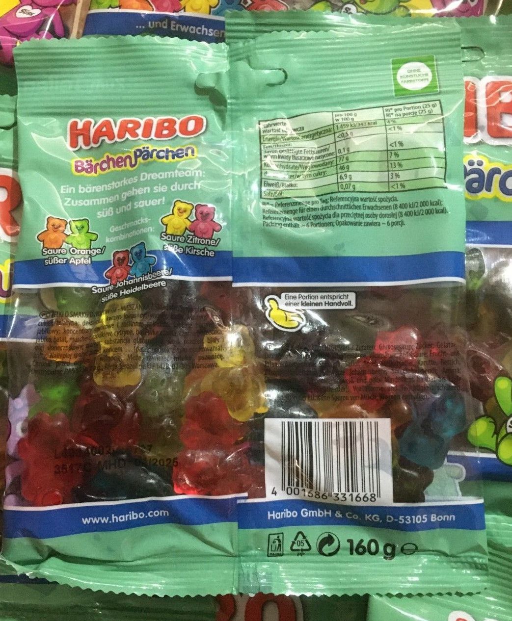 HARIBO 20 Tüten Haribo Bärchen Pärchen a 160gr ? Zusammen gehen sie durch süß und sauer