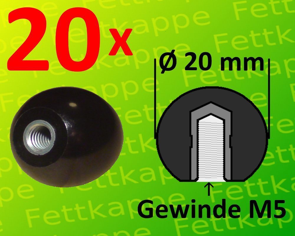 20 x Kugelknopf M5 Ø20mm schwarz - Stahlgewinde Kugelkopf Hebelknopf Schaltknauf