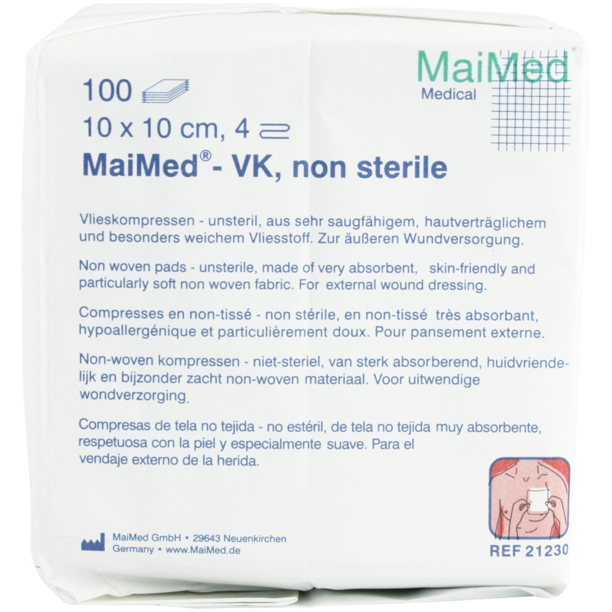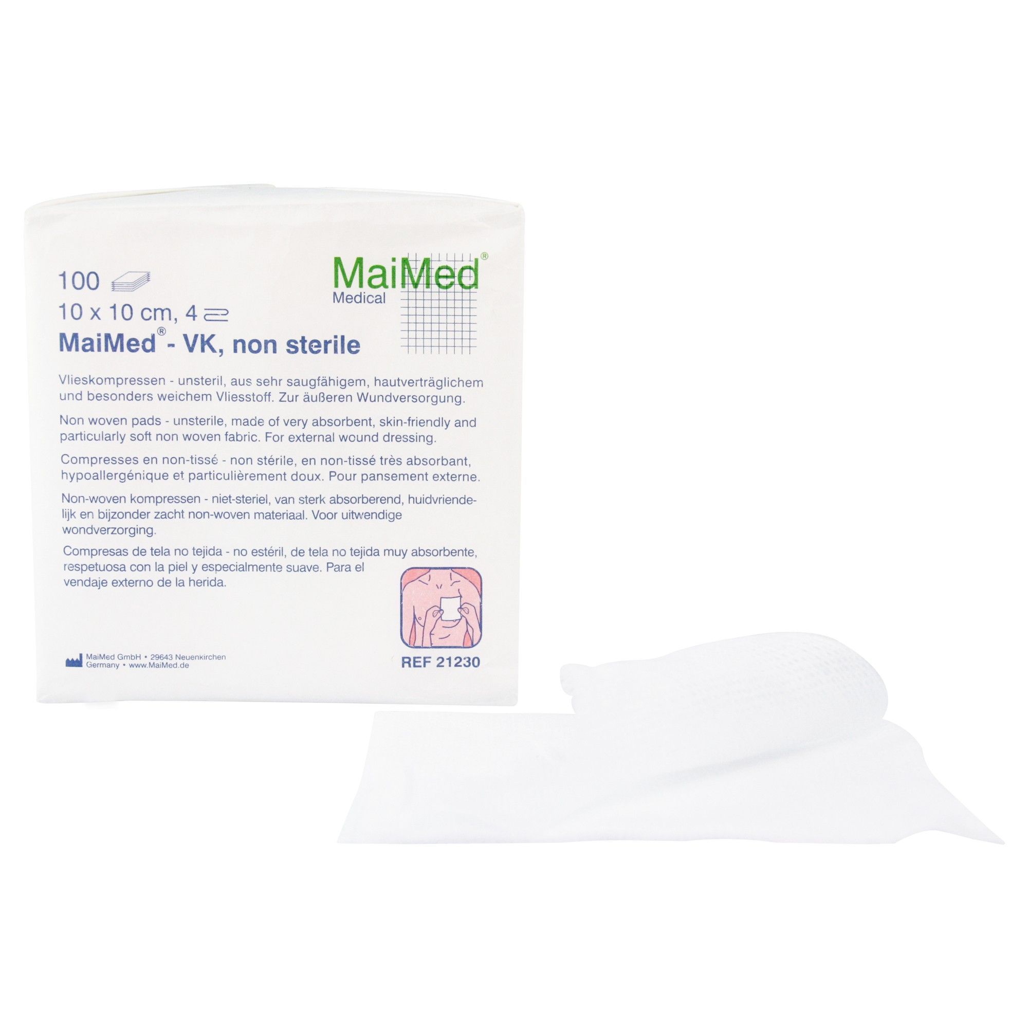 MaiMed 20 x MaiMed - VK Vlieskompressen unsteril 10 x 10 cm 4-fach 30 g