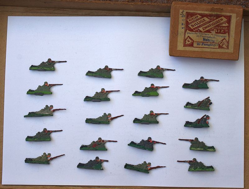 20 Zinnfiguren "Deutsche Infanterie im Stahlhelm im Feuergefecht"