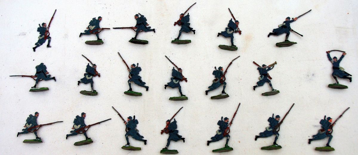 20 Zinnfiguren Französische Infanterie-sturmlaufende Fußgänger im Stahlhelm