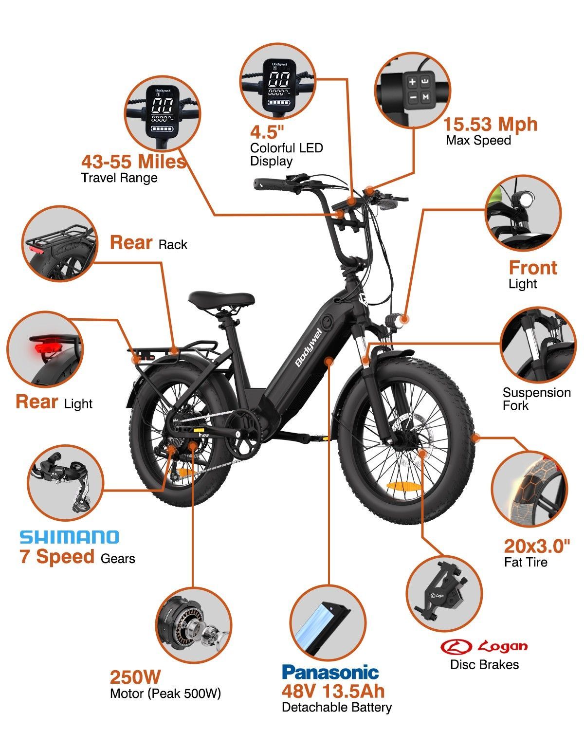 20-Zoll All-Terrain Tourenrad E-Bike mit 250W 48V 15Ah Akku bis 90km Reichweite