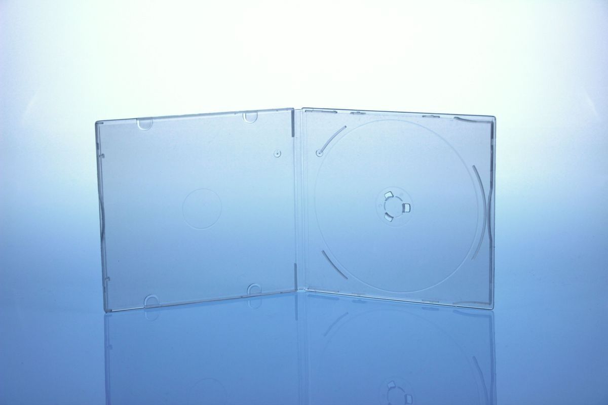 CD Slimcase, unzerbrechlich für 1 CD/DVD/BluRay Klarfolie außen: oben und unten offen Farbe: transparent matt Format: ca. 125 x 132 x 5.2 mm Material: PP