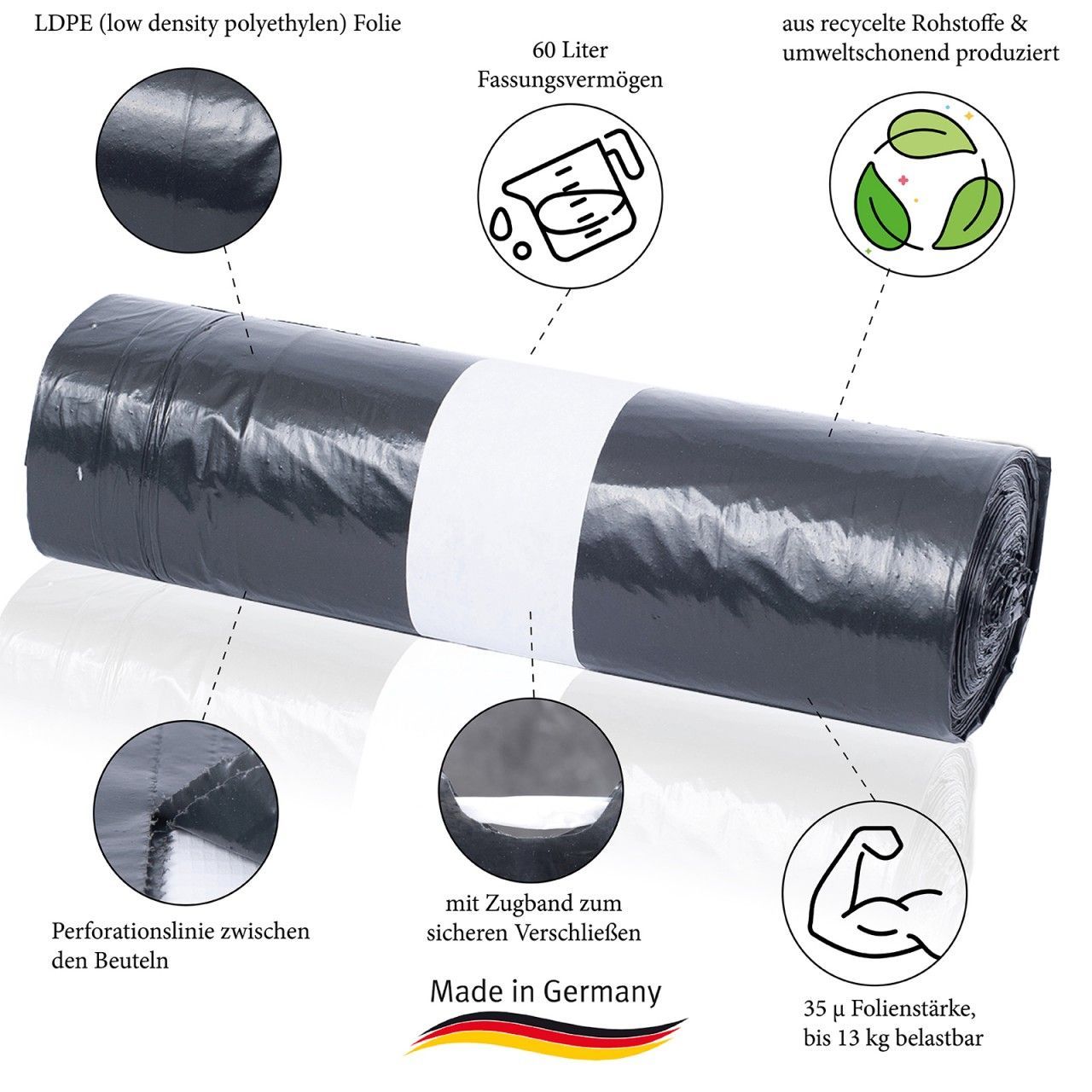 2000 Müllbeutel LDPE Folie 60 Liter mit Zugband Abfallsäcke Müllsäcke schwarz