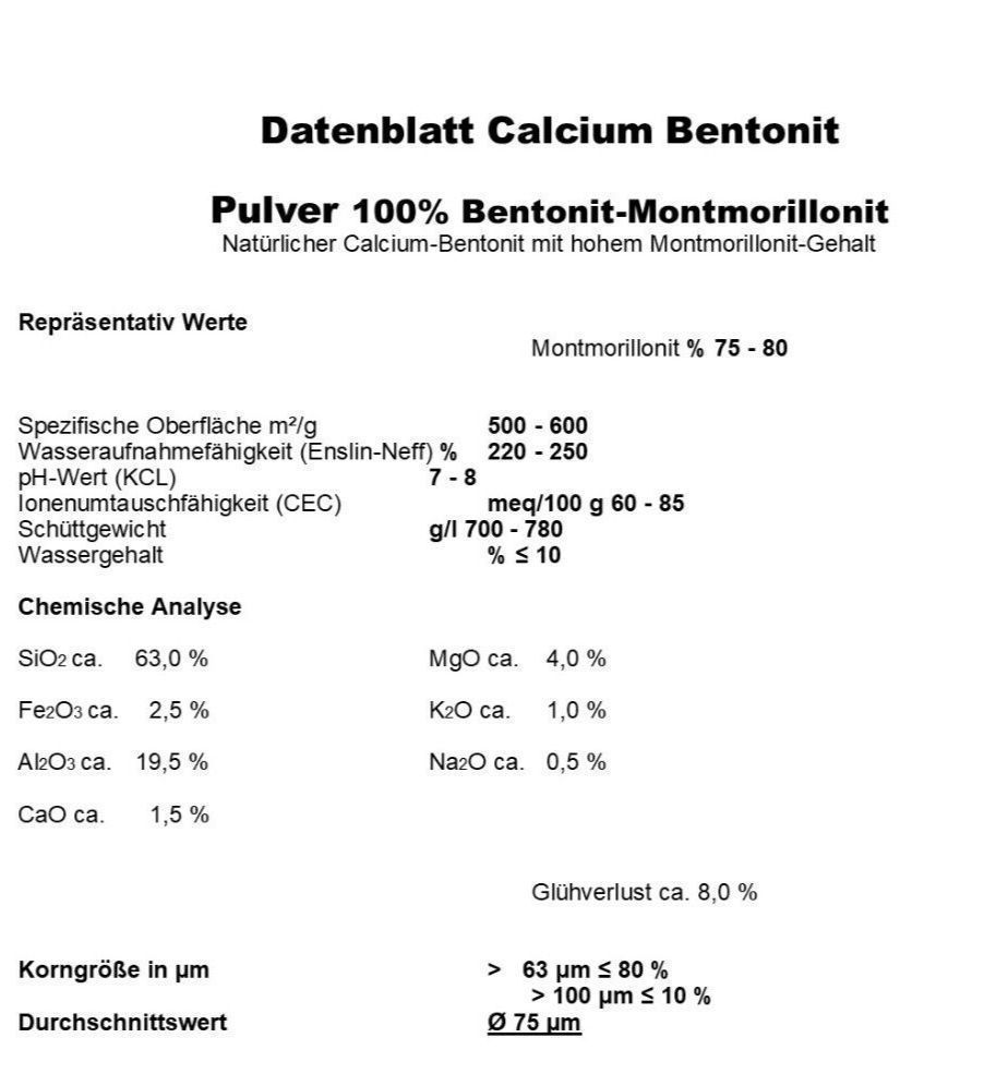 2000g Bentonit Pulver 75µm Montmorillonit Naturmineral Mineralerde (2x1kg)