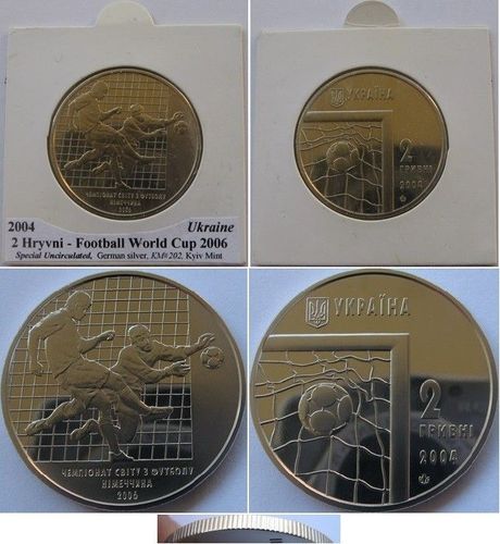 2004, Ukraine, 2 Hryvni - Football World Cup 2006 (Mintage:50,000)