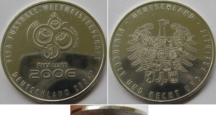 Auktionsobjekt: 2006, Deutschland, Gedenksilbermedaille: FIFA Fußball-Weltmeisterschaft Deutschland 2006”. Merkmale: Material: 925 Silber, Edelmetallgehalt pro Einheit: 1 4 oz, Punze: keine, Erhaltungsgrad: Stempelglanz (STGL), Durchmesser: 30.0 mm, Gewicht: 8.38 g, Feingewicht: 7.75 g, Herste