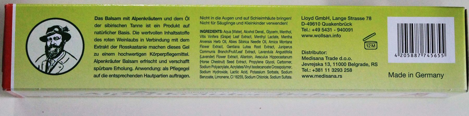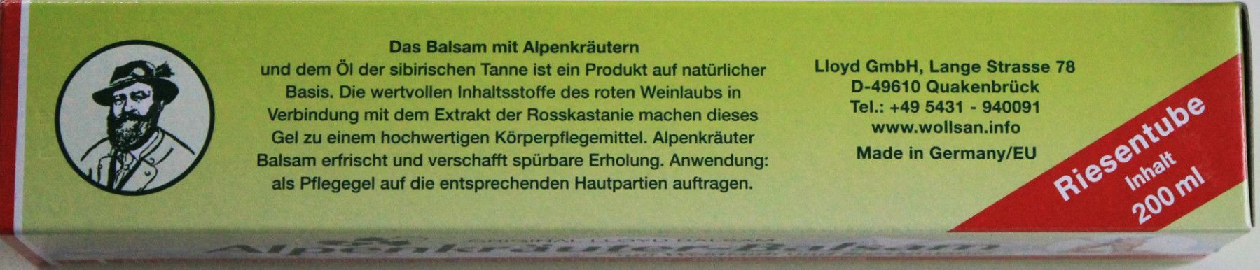 200ml Alpenkräuter-Balsam Weinlaub Rosskastanie Gel Massage Körper Creme