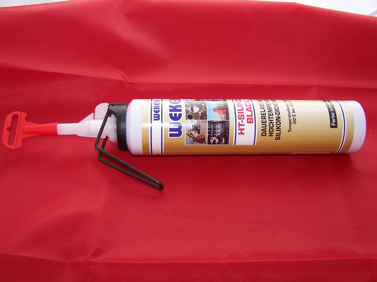 Hersteller: Verteiler: Unser Shop Kontaktaufnahme 1 x 200ml Kartusche (Presspack) WEKEM WK 158-200 HT-SILIKON RED Dauerelastische Hochtemperatur Silikon-Dichtmasse Temperaturbeständigkeit von -50°C bis +300°C Farbe: Rot Wie ist dieses Produkt verpacktEuro Beispielbild 1 Presspack mit 200ml Inhalt. V