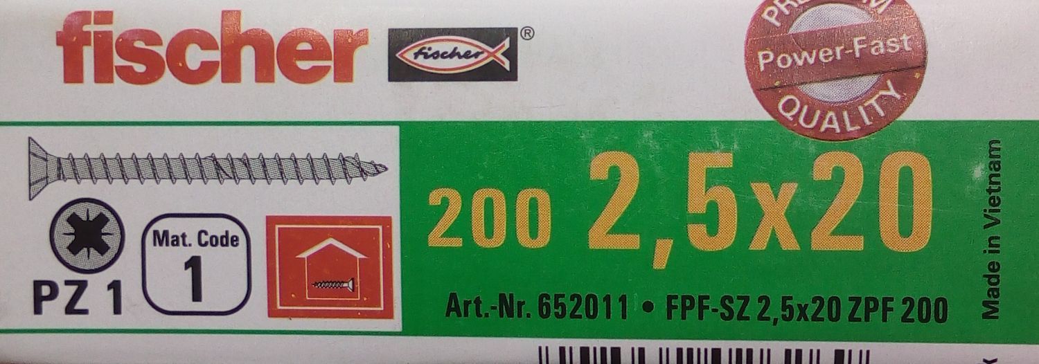 200x fischer Spanplattenschrauben 2,5x20 PZ1 Holzschrauben verzinkt Vollgewinde