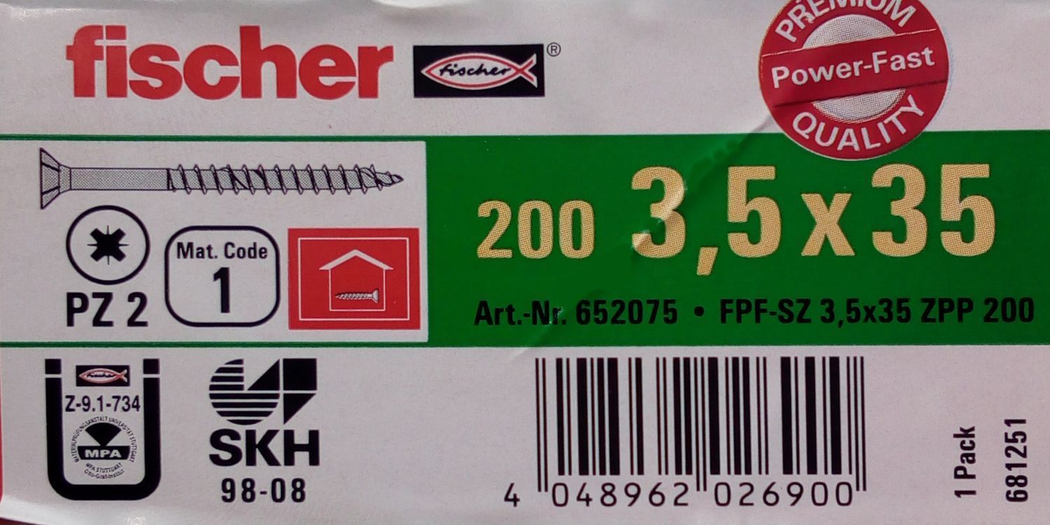 200x fischer Spanplattenschrauben 3,5x35 PZ2 Holzschrauben verzinkt Teilgewinde