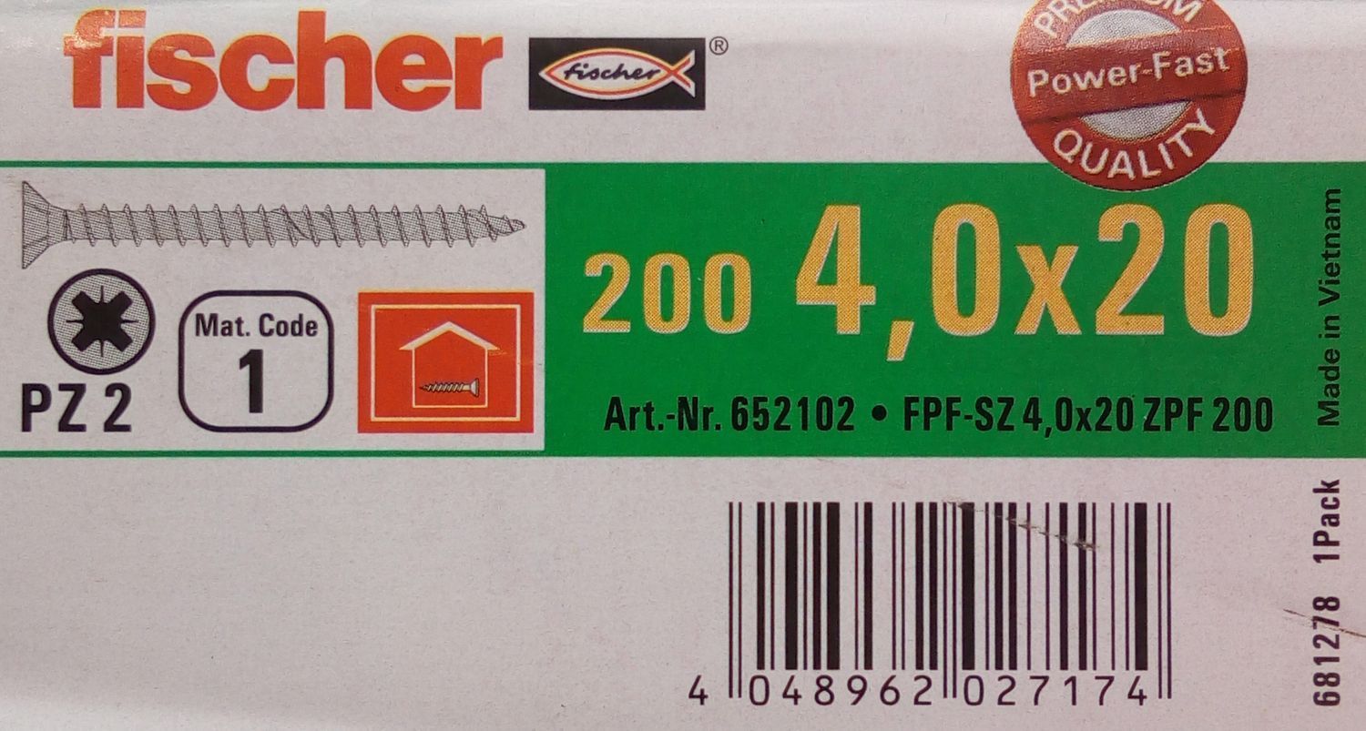200x fischer Spanplattenschrauben 4,0x20 PZ2 Holzschrauben verzinkt Vollgewinde