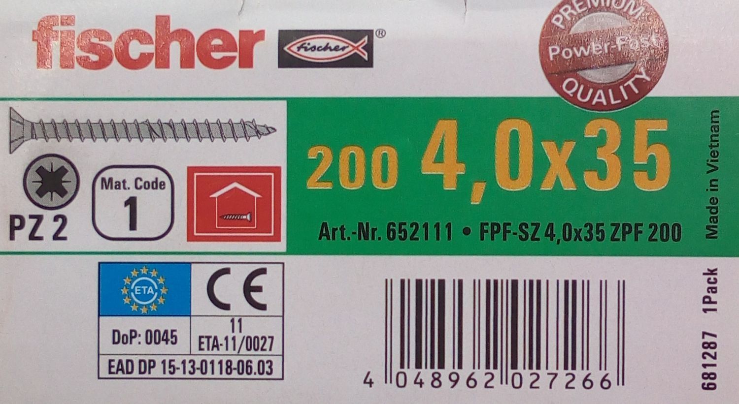 200x fischer Spanplattenschrauben 4,0x35 PZ2 Holzschrauben verzinkt Vollgewinde
