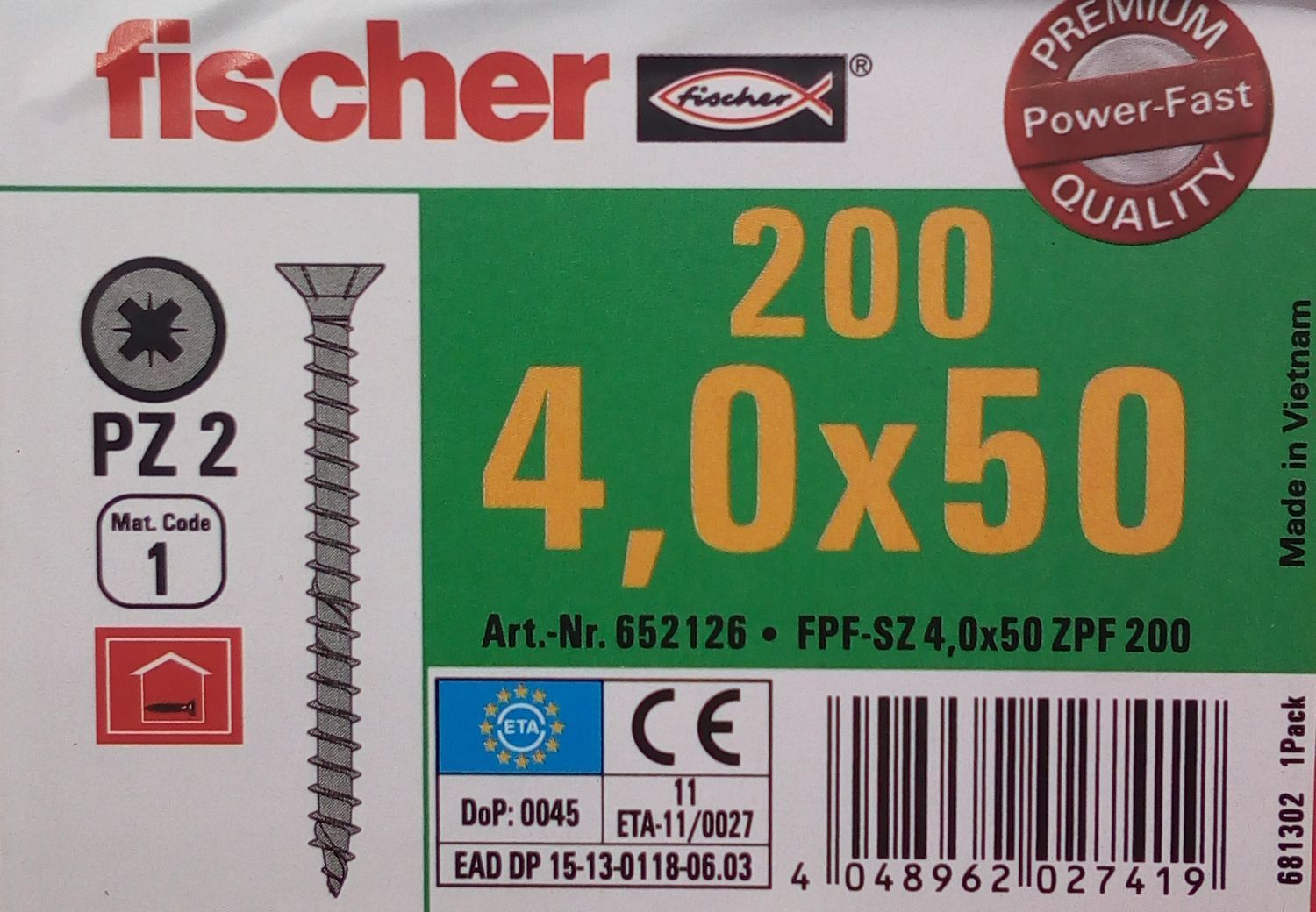 200x fischer Spanplattenschrauben 4,0x50 PZ2 Holzschrauben verzinkt Vollgewinde