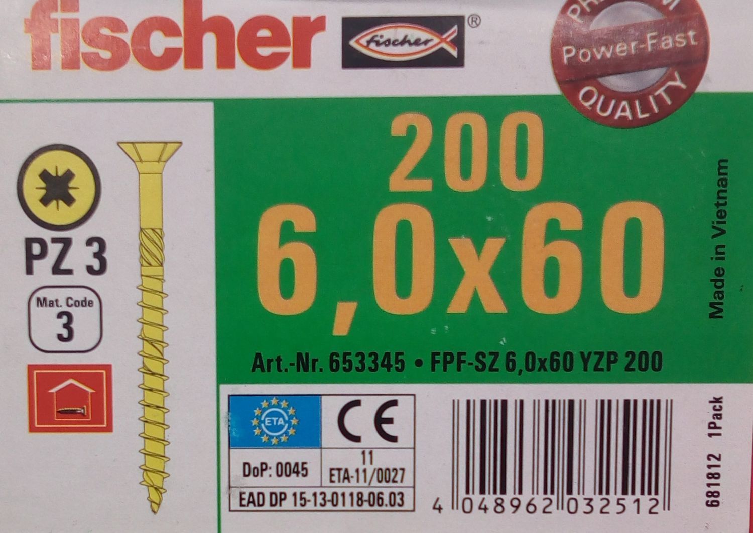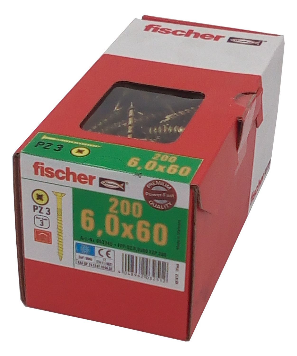 200x fischer Spanplattenschrauben 6,0x60 PZ3 Holzschrauben verzinkt Teilgewinde