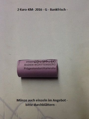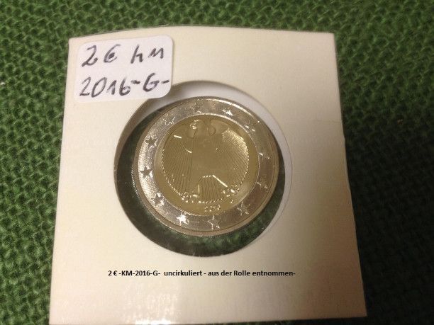2 € Münze 2016 - G - Bankfrisch- uncirkuliert - Porto als Brief 1 St.- 1,00 €- unversichert- oder per Ew- Einschreiben 4,90 € (vers.- + mit Nachweis) ab 2 St. nur als Ew- Einschreiben- mehere auf Anfrage - entscheiden Sie selbst- Privatverkauf- keine Garantie- keine Gewährleistung nach EU-Recht- kei