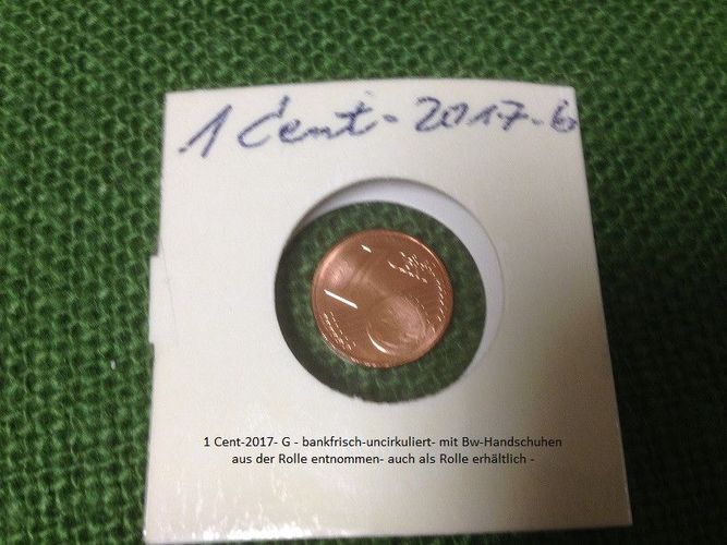 3 x 1 Cent- 2017 G - uncirkuliert - aus der Rolle - auch als DS-Rolle erhältlich - Privatverkauf- keine Haftung- keine Gewähr nach EU-Recht- keine Rücknahme- keine Haftung für unversicherten Versand- Lieferung OHNE Papprähmchen- bis 5 St. 1,95 €- und oder auch mehere als vers.- + nachweisbare Sendun
