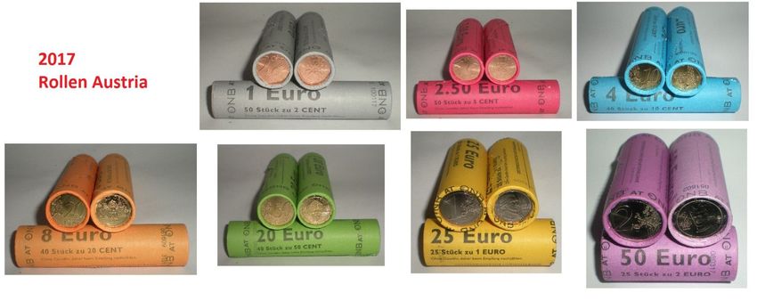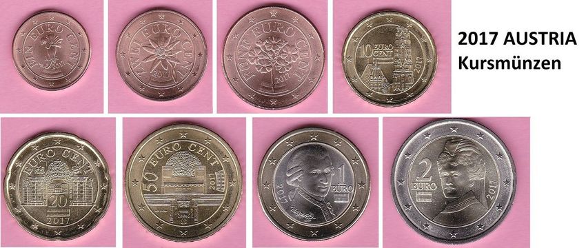 2017 Österreich Münzen 1 Ct & 2 Ct & 5 Ct & 10 Ct & 20 Ct & 50 Ct & 1 € & 2 € UNC