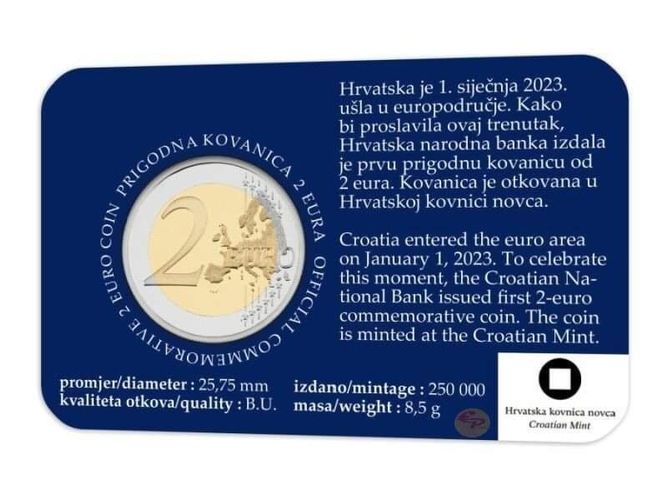 2023 Kroatien Hrvatska 2 EURO Gedenkmünze - Einführung des Euro in coincard