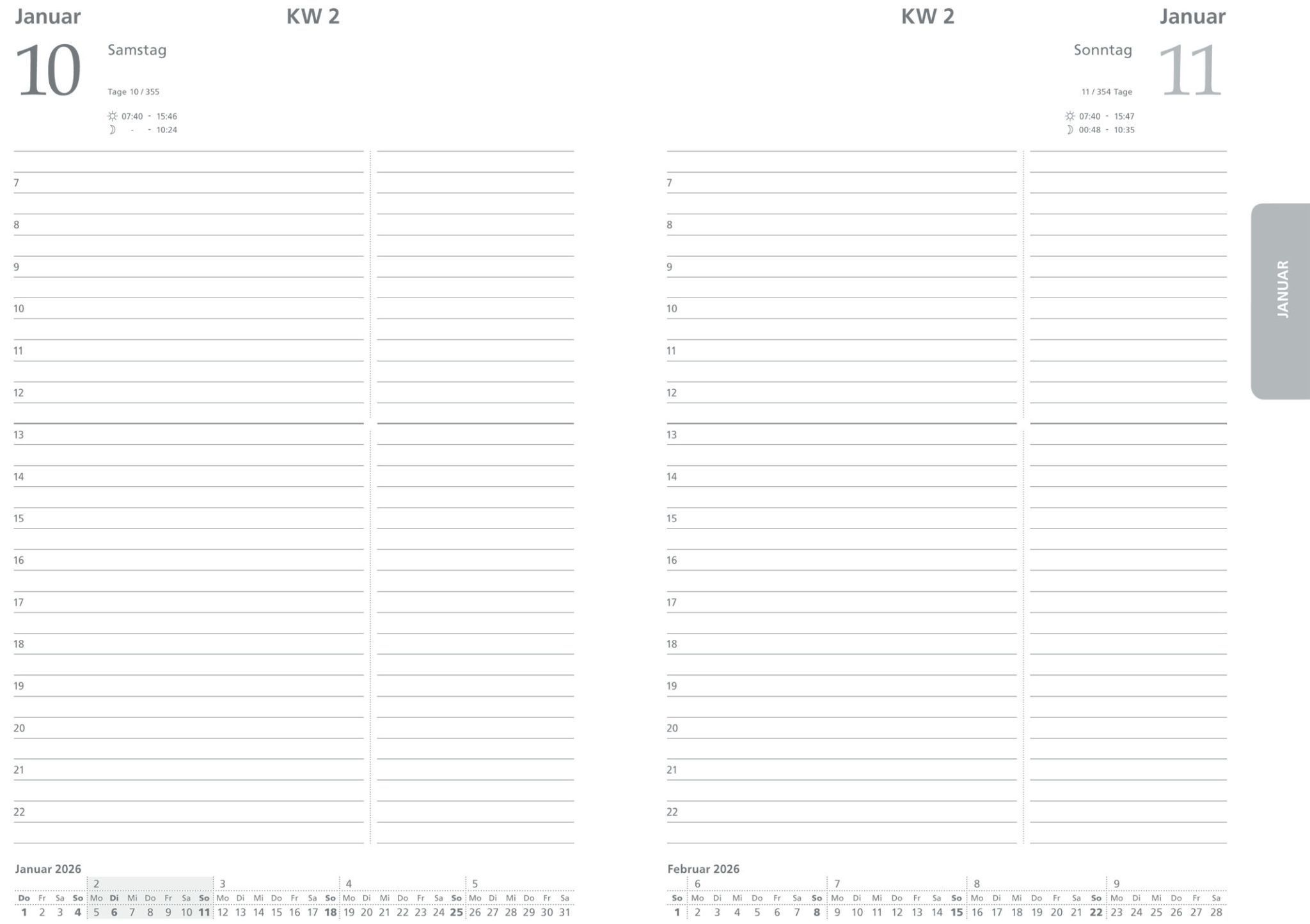 2026 ADINA Buchkalender Chefplaner A5 schwarz 1 Tag 1 Seite