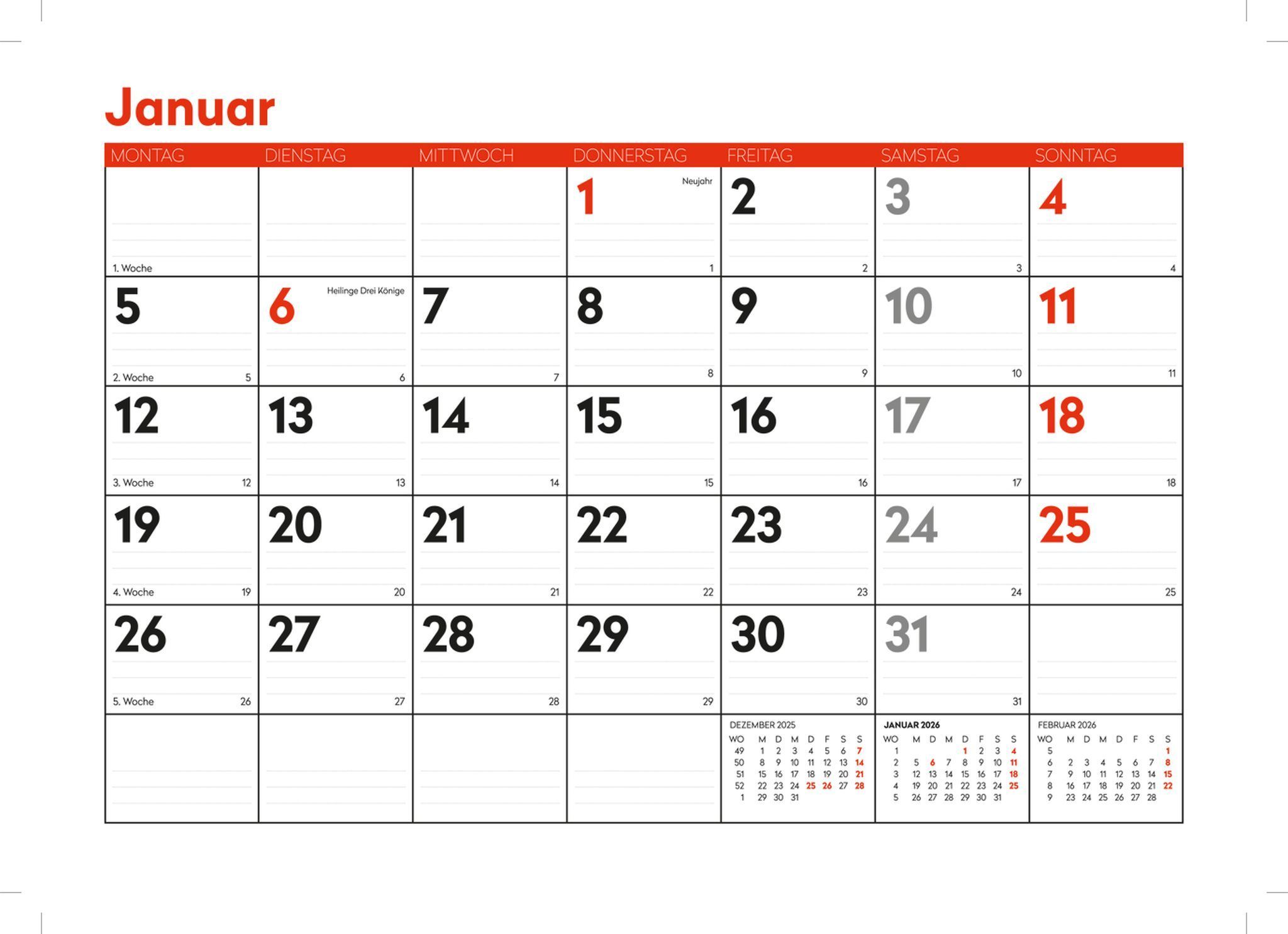 • Großer 6-Monatskalender 2026 XXL Wandkalender 6 Monate Bürokalender weiß