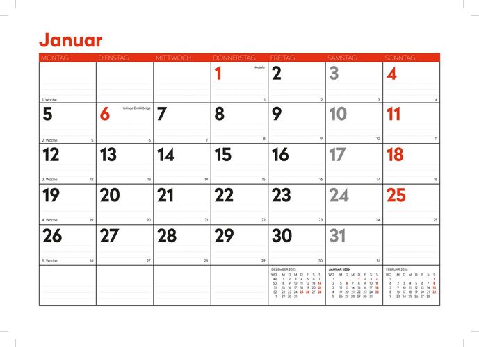 Brunnen 2026 ADINA Monatskalender A4quer 1S/1Monat mit Ringbindung Aufhängung