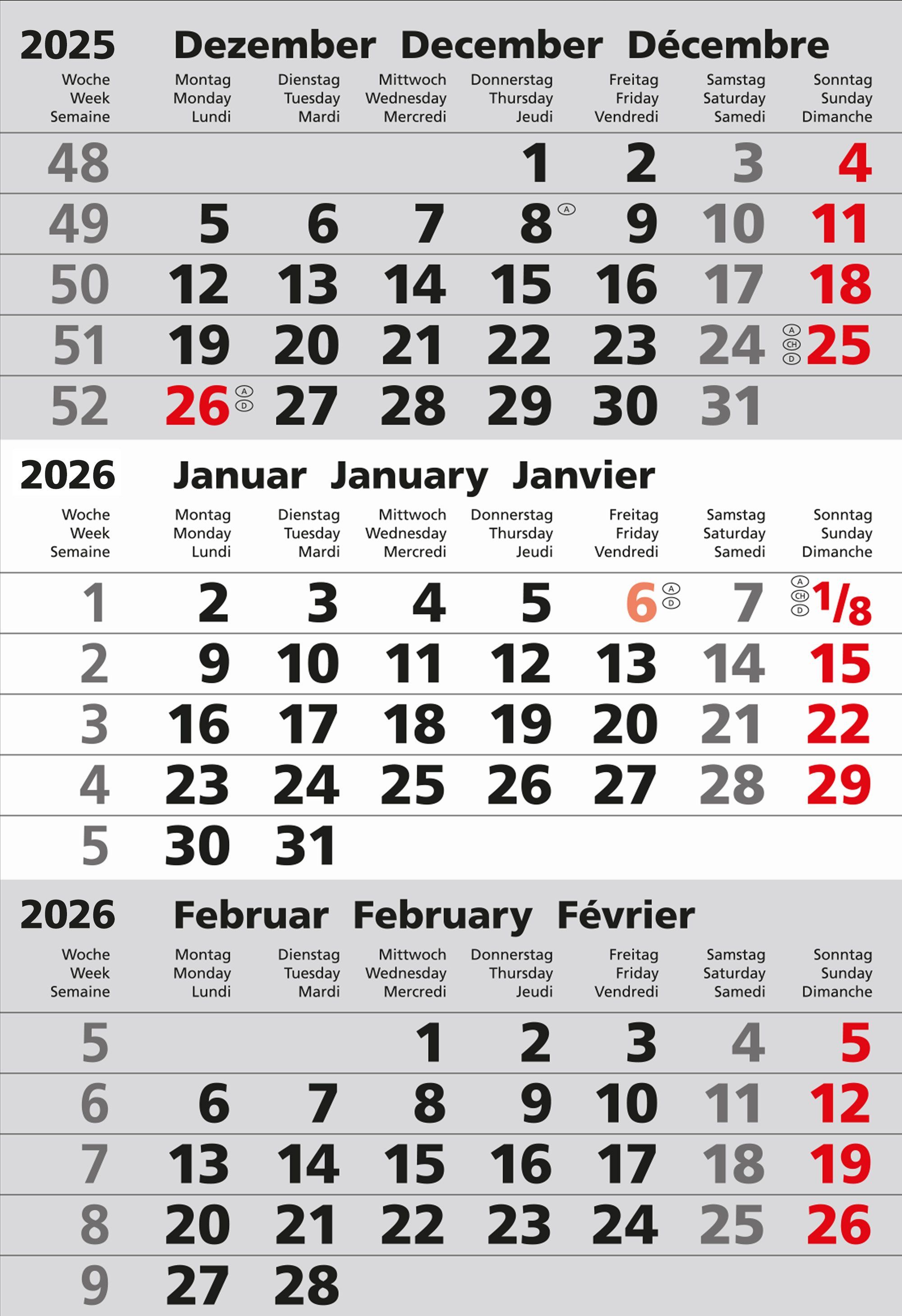 2026 Güss Ersatzkalendarium für Edelstahlkalender