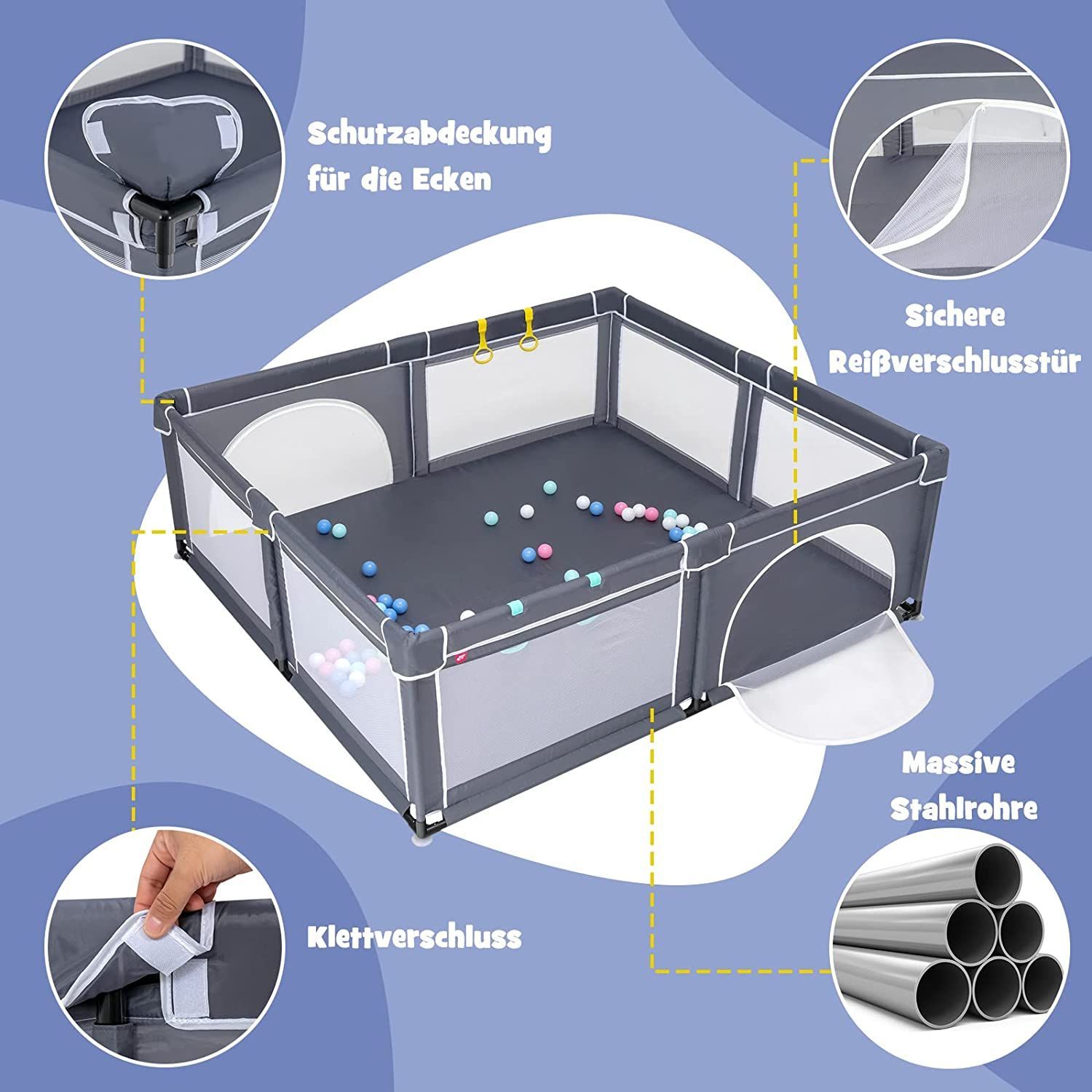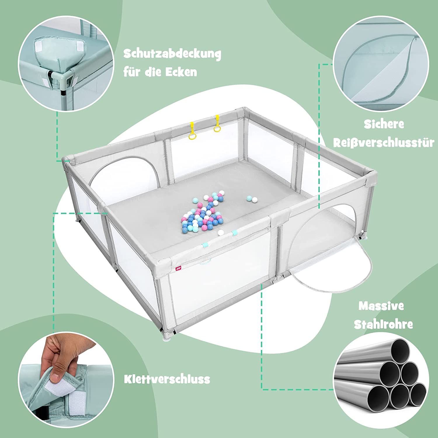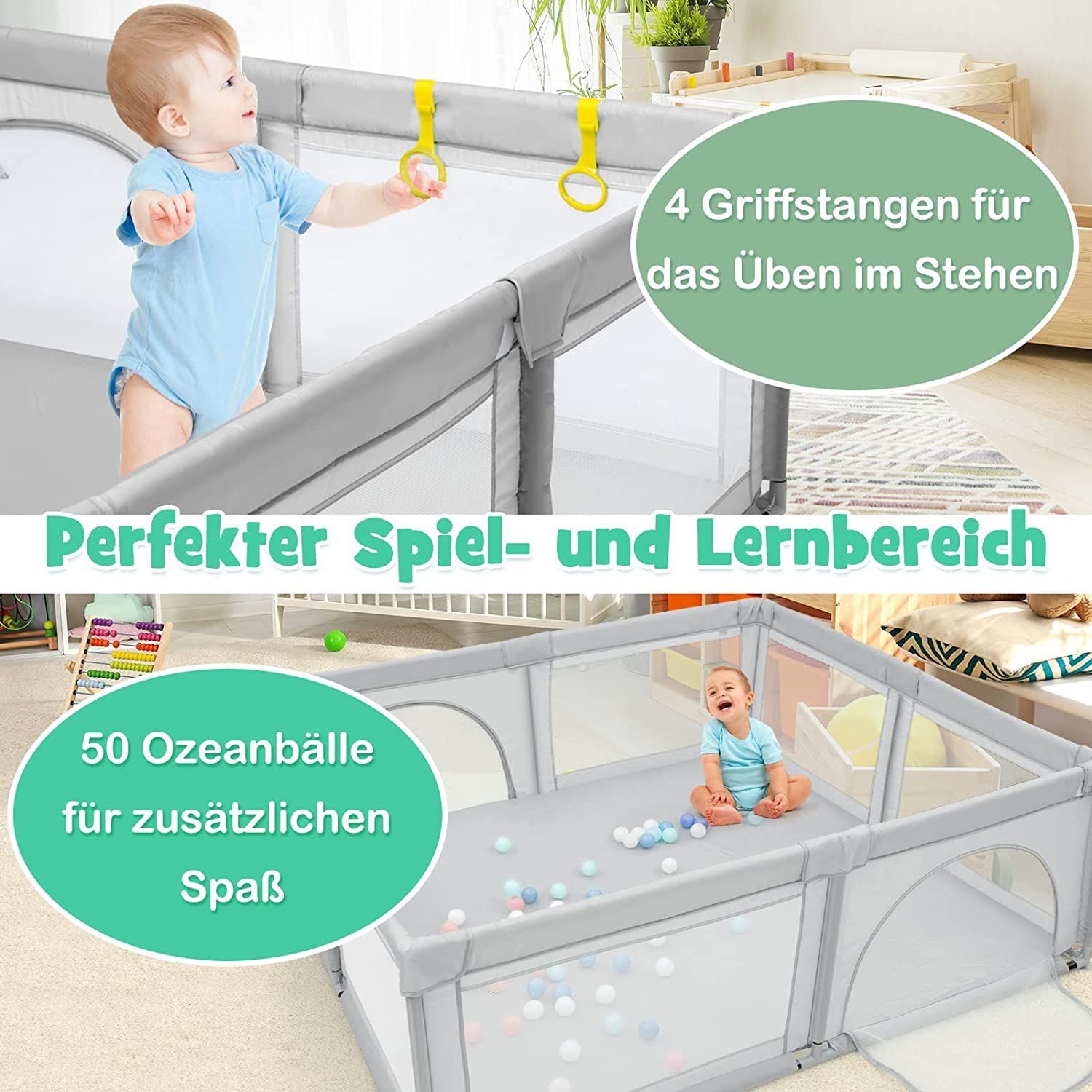 206 x 185,5cm Baby Laufstall mit 50 Spielbällen, Laufgitter mit atmungsaktivem Netz