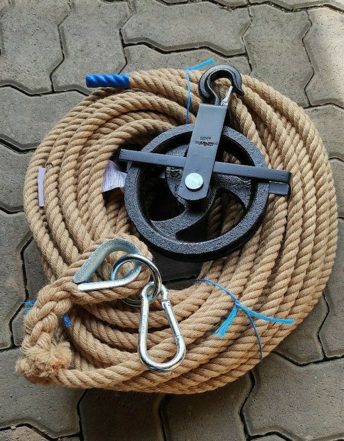 20m Hanfseil Bau-Aufzug + Seilrolle BR191 Bauseil Eimerseil Dachdecker