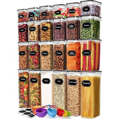 Vtopmart Vorratsdosen Set luftdicht mit 24 Etiketten Schwarz
