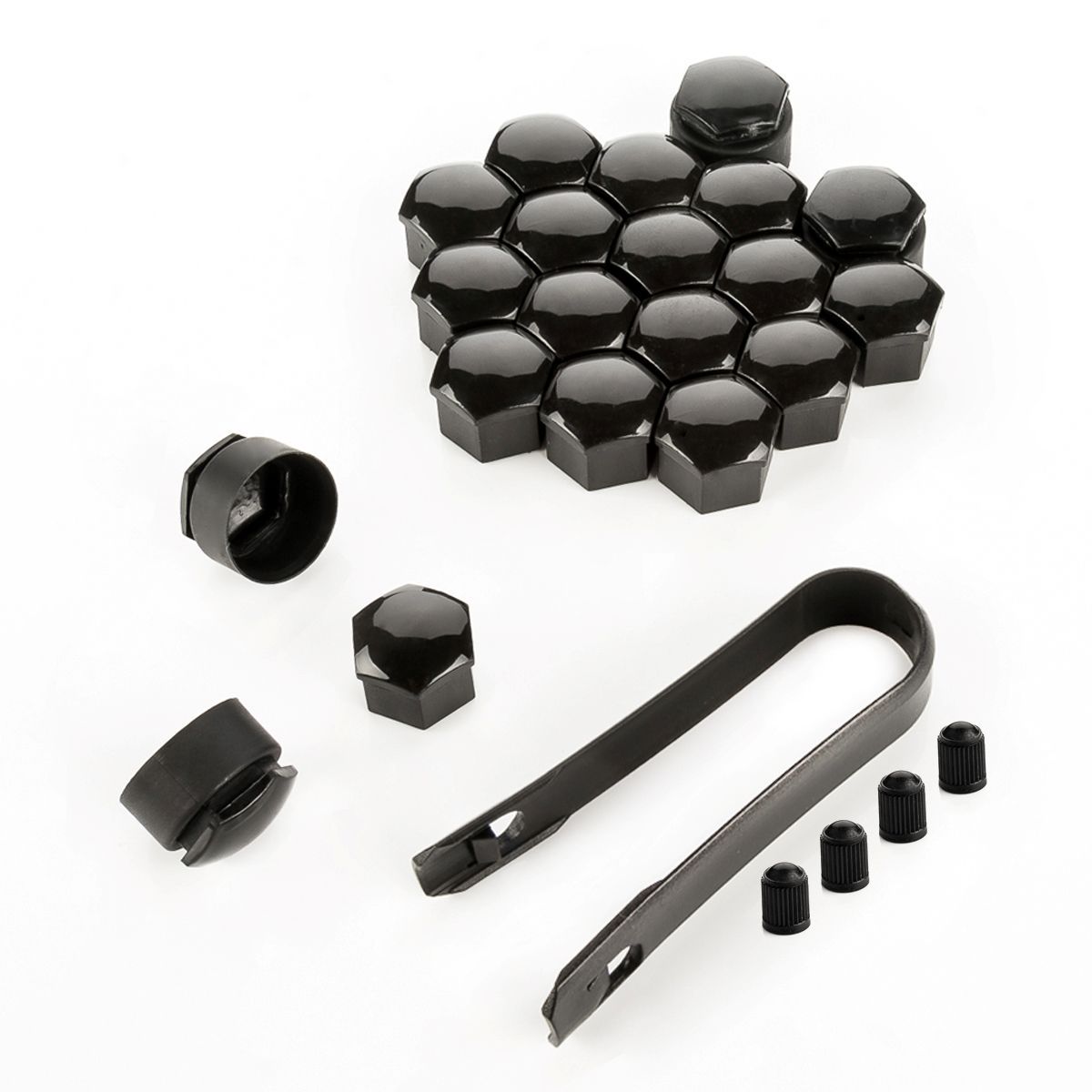 20x Radschrauben Kappen 17mm Schwarz glänzend Diebstahlhemmend für VW SEAT SKODA