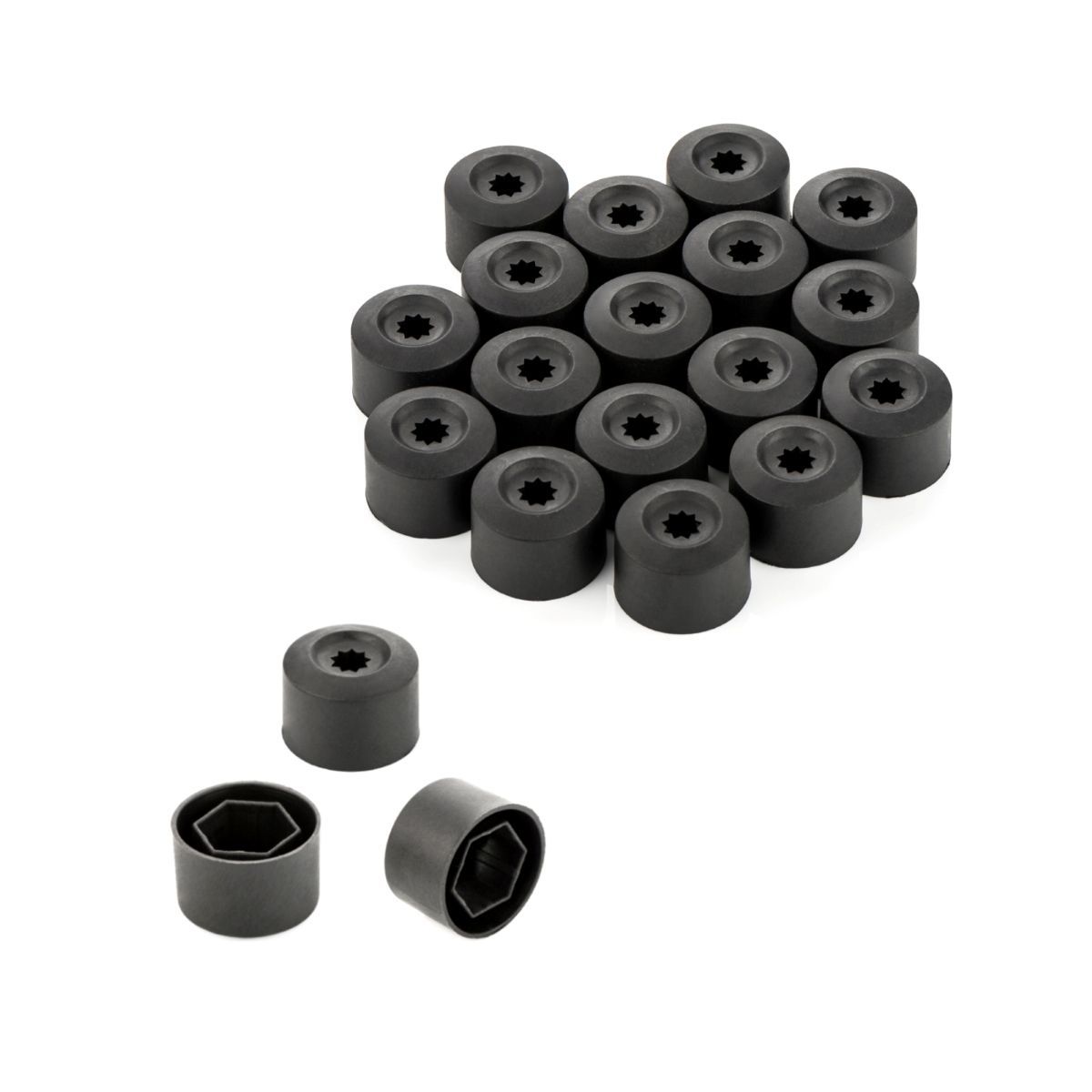 20x Radschrauben Kappen Set 17 mm schwarz für JAGUAR Daimler Maybach Mercedes