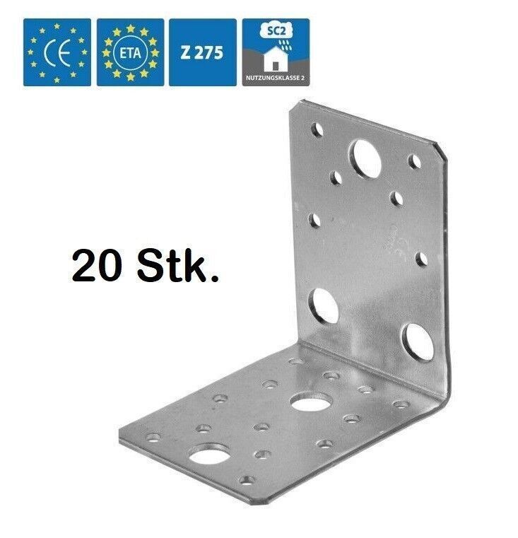 20x Winkelverbinder 105 MM M. Kombiloch OHNE STEG 105X105X90X3,0 Verzinkt